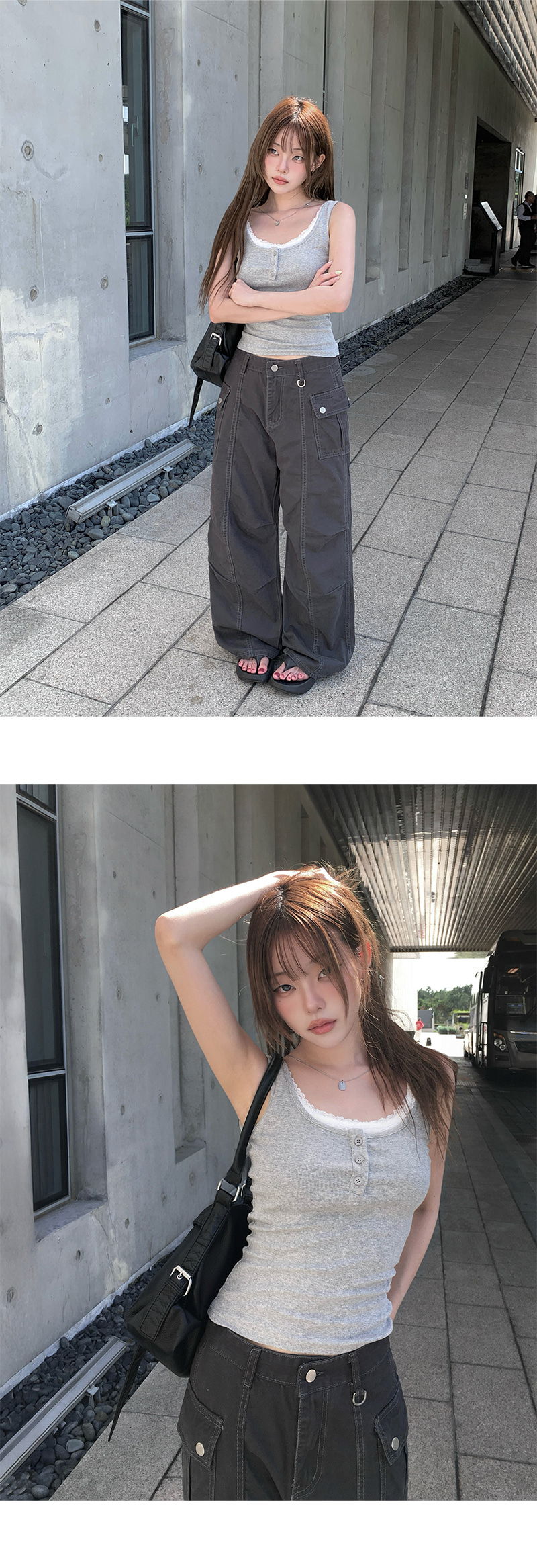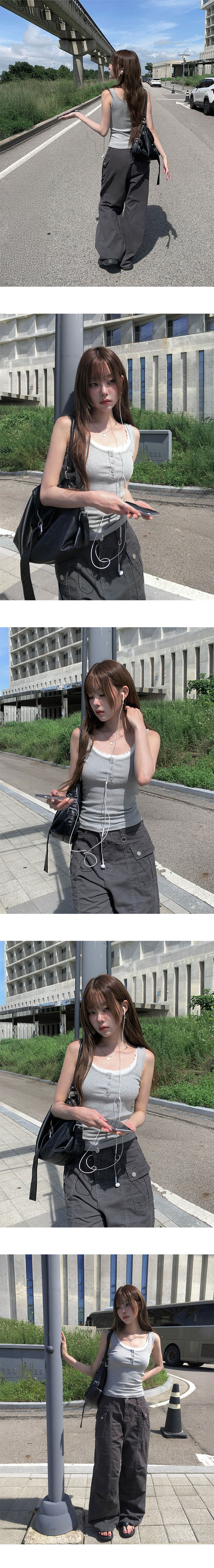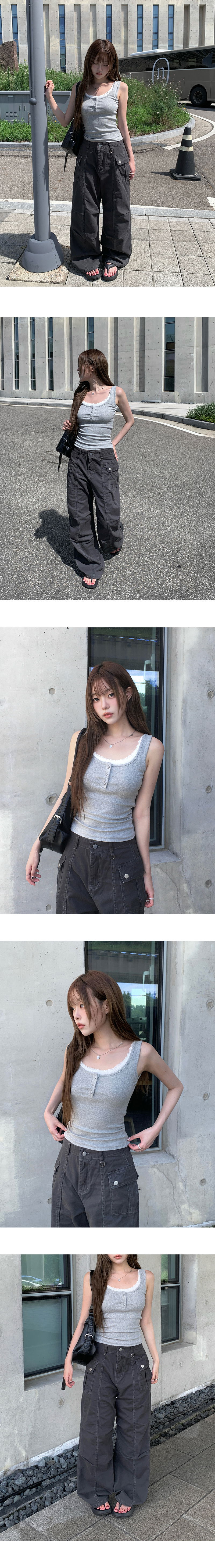 러블리한 무드의 버튼 골지 슬리브리스 나시입니다 !