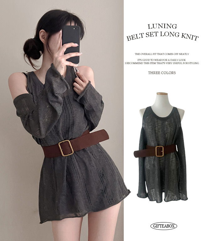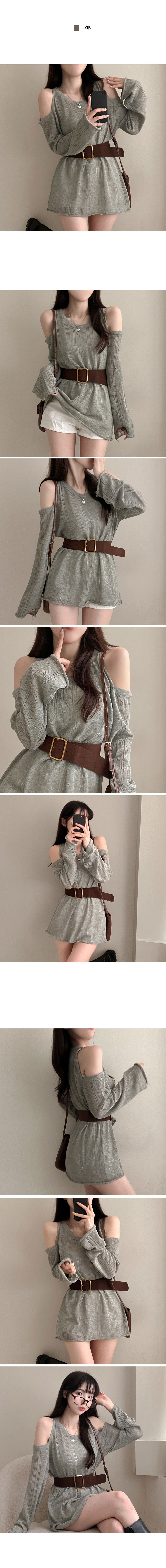 루닝 오프 숄더 벨트 여리핏 하프 니트♥