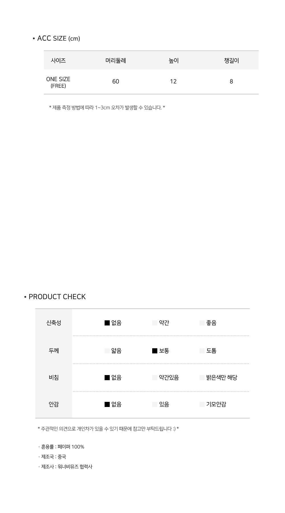 | 제품 측정 방법에 따라 1~3cm 오차가 발생할 수 있으며, 사이즈는 단면으로 측정됩니다 | |