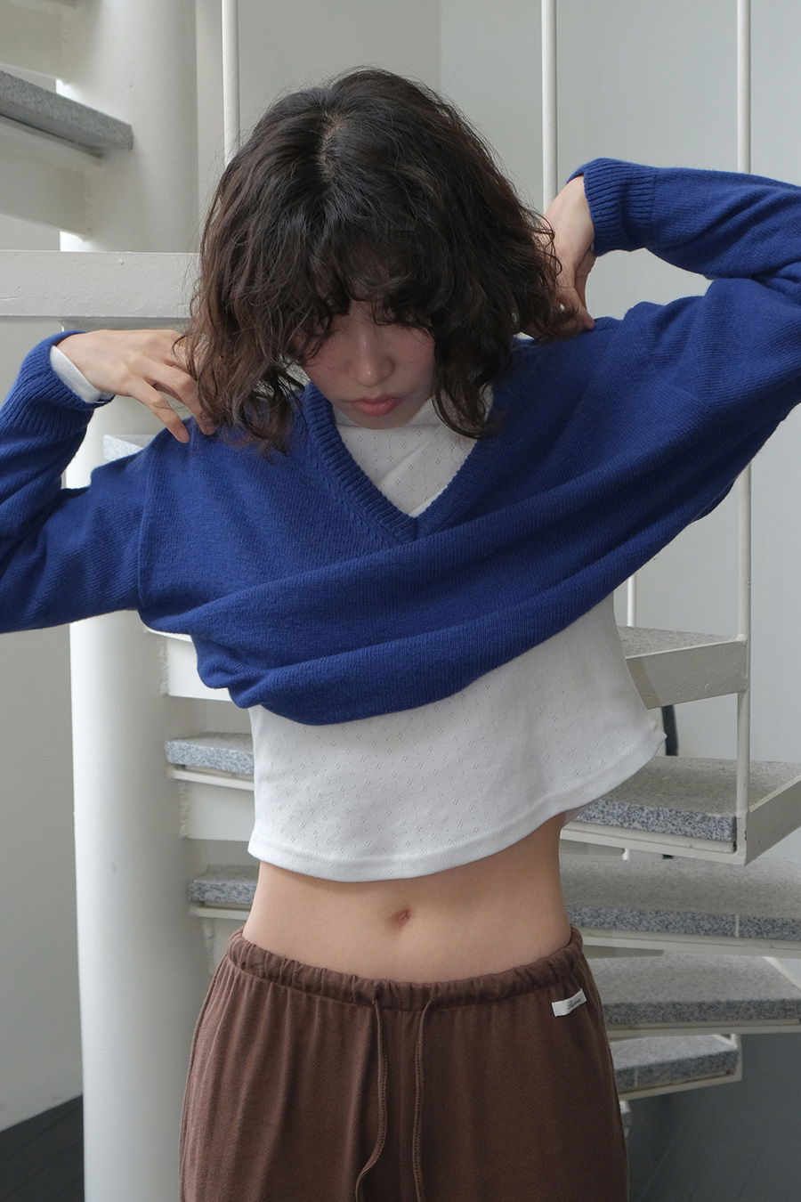 - [MADE]위스퍼링 펀칭 세미크롭 티 (긴팔)