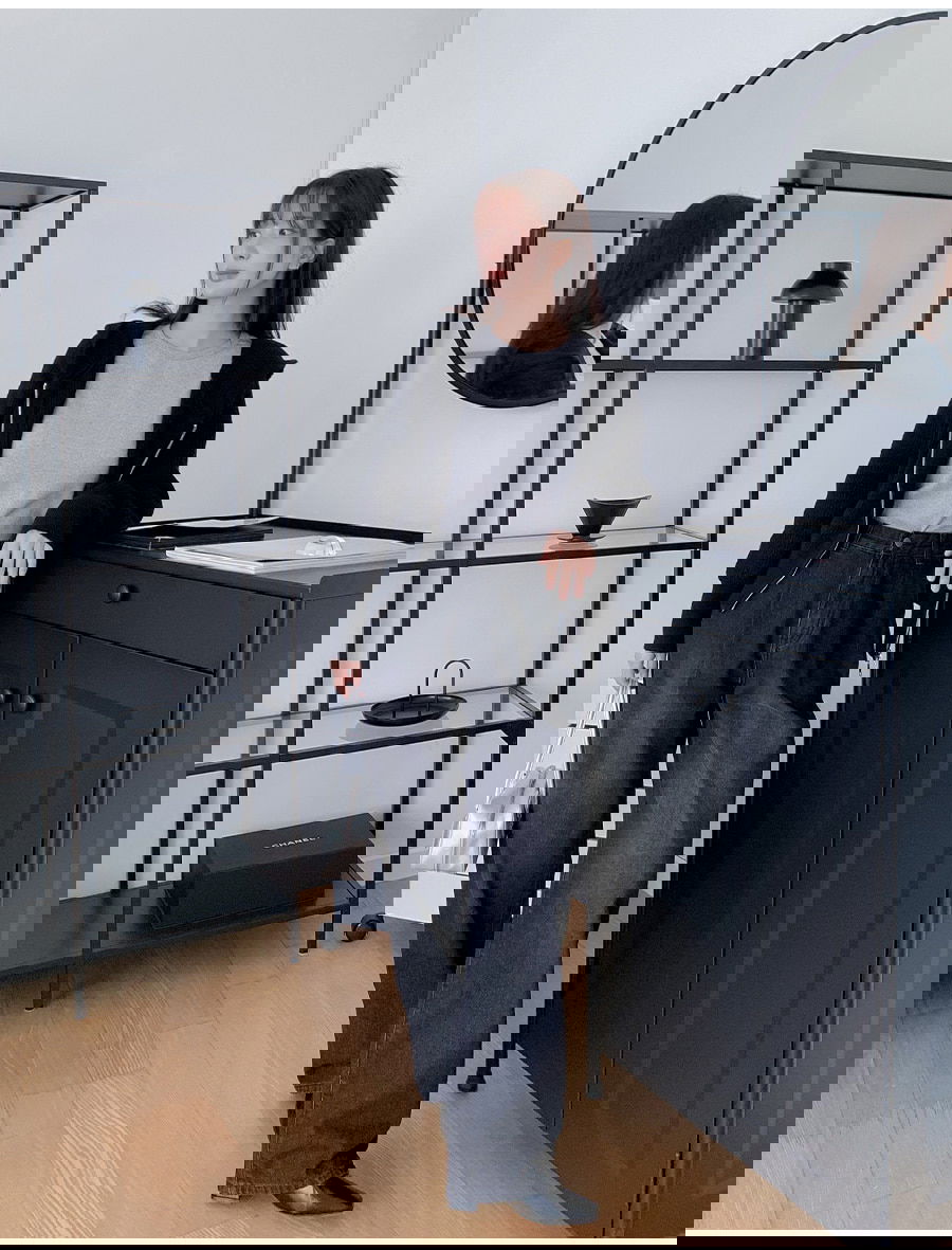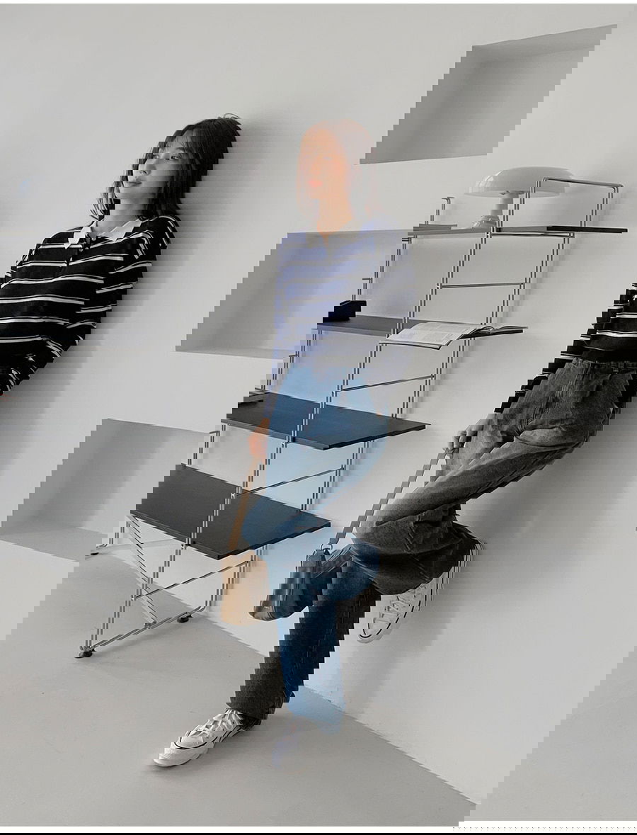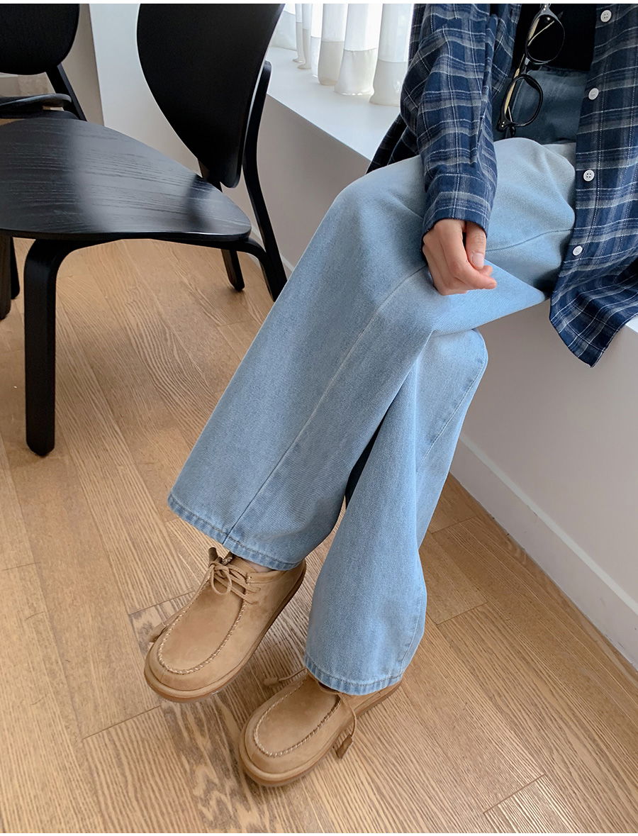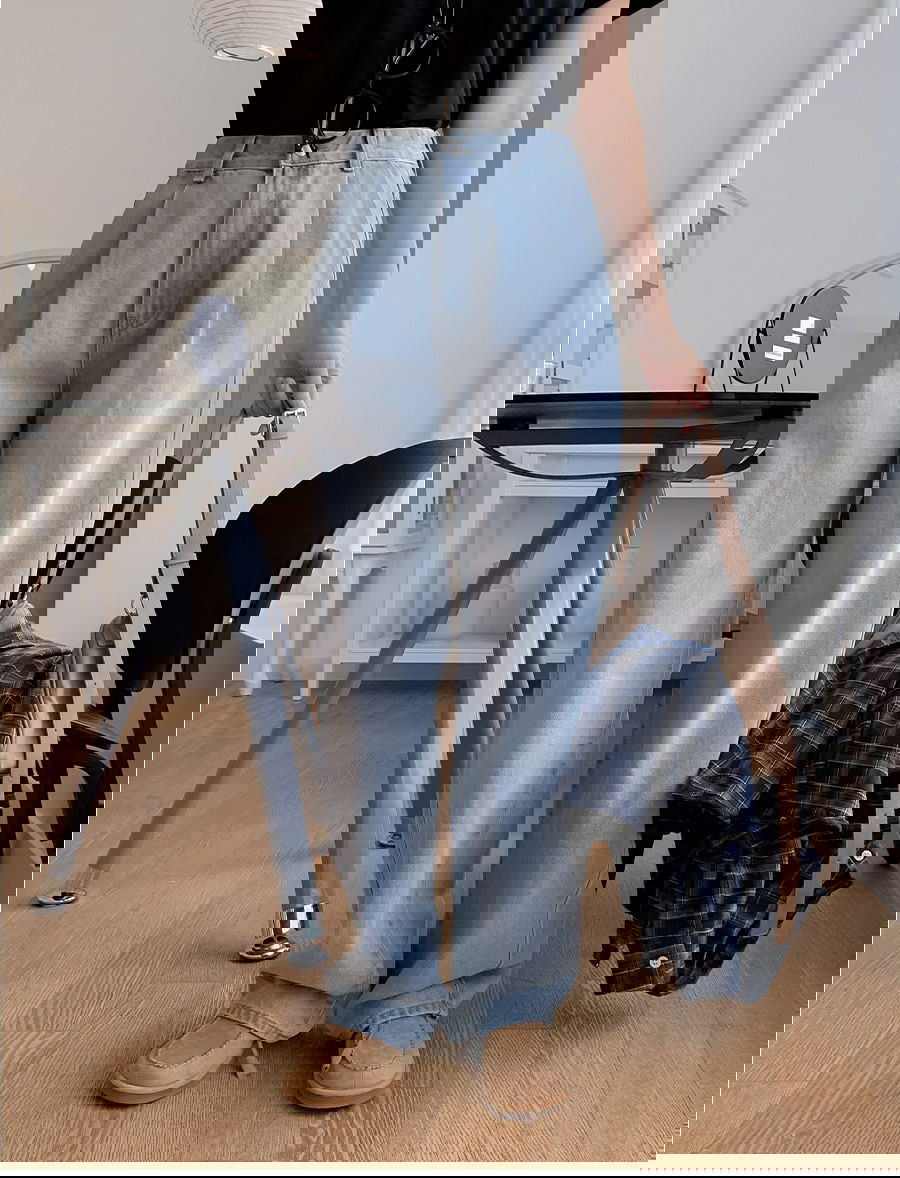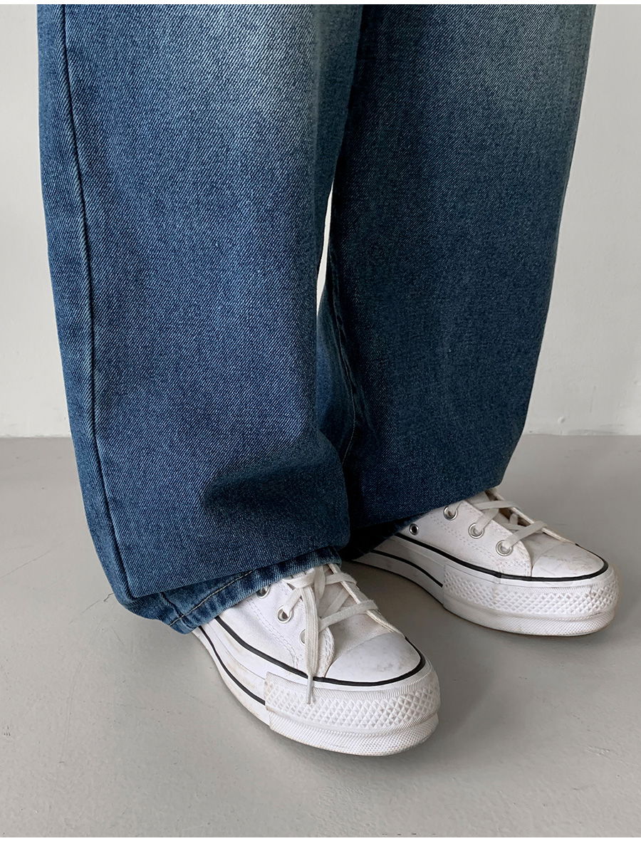 - 허리는 핏 되면서 아래로 깔끔하게 떨어지는 와이드 일자핏입니다.