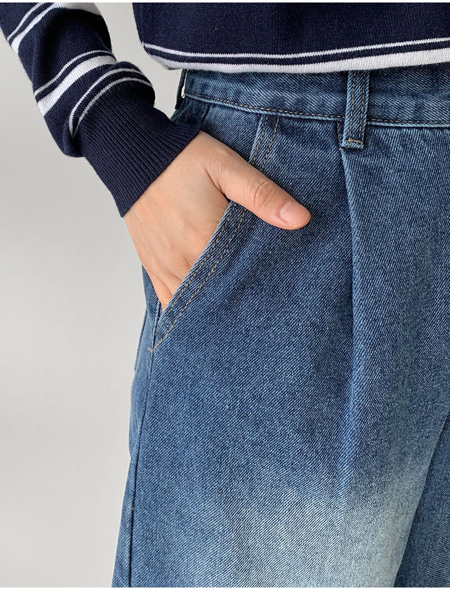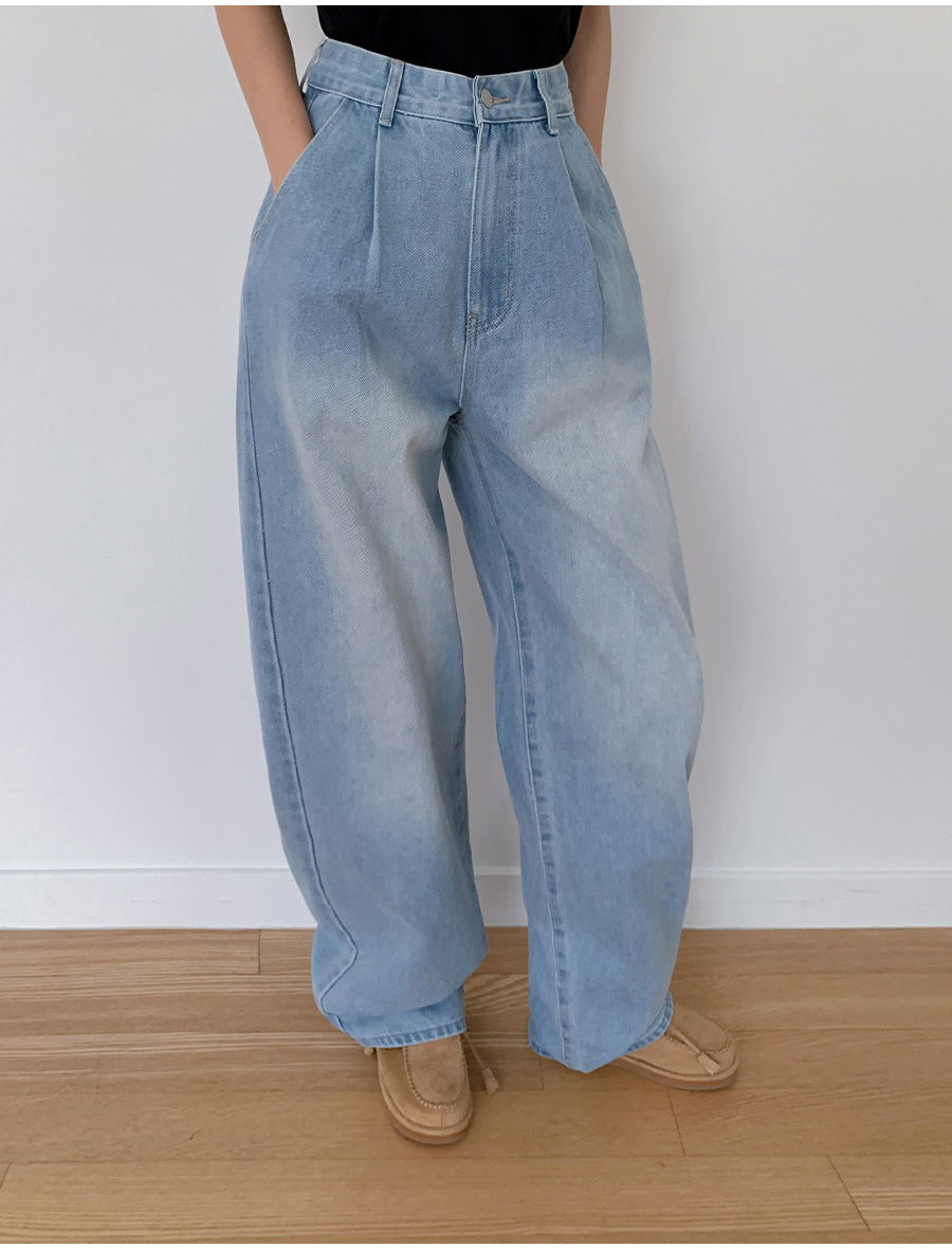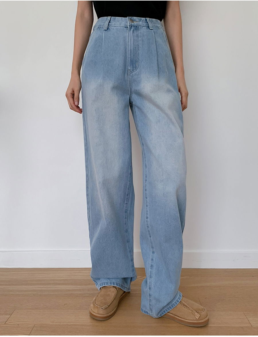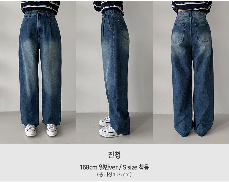 프론트 핀턱으로 디테일을 더해준 데님 팬츠입니다.