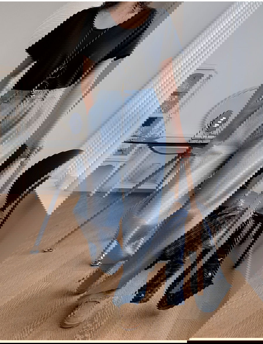 # 허리사이즈는 밑위를 올려서 ㅡ 자로 만든 후 사이즈 확인해주세요.