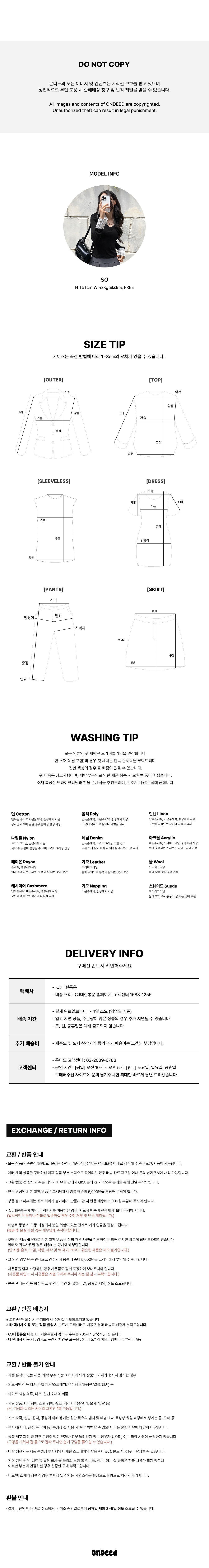 · 모든 의류의 첫 세탁은 드라이크리닝을 추천하며, 세탁 후 착용 부탁 드립니다.