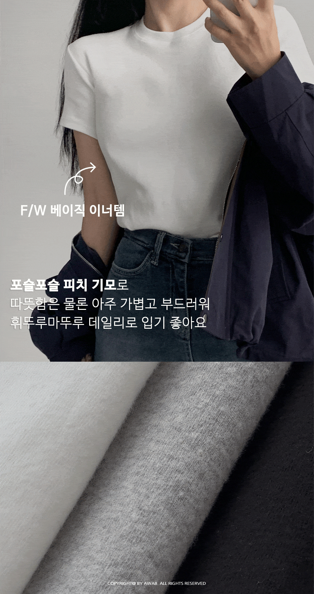 피치 기모 원단이 잘 드러나는 색으로