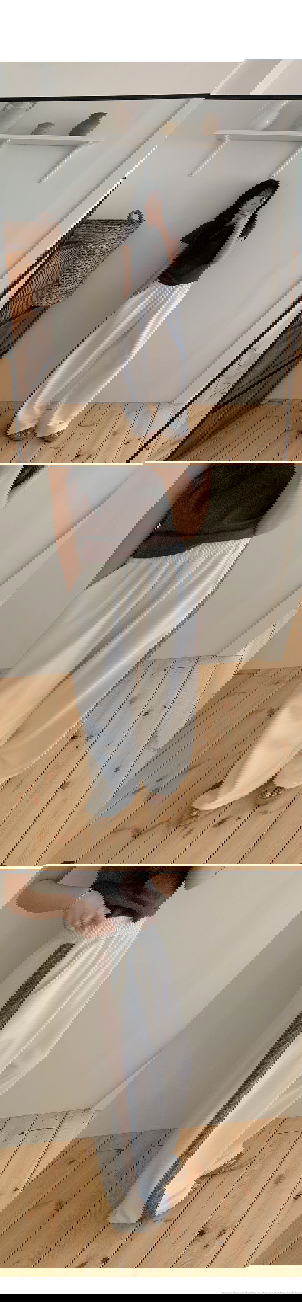 허벅지부터 밑단까지 내추럴한 아웃핏이 자연스러운 체형 커버를 도와줘요.