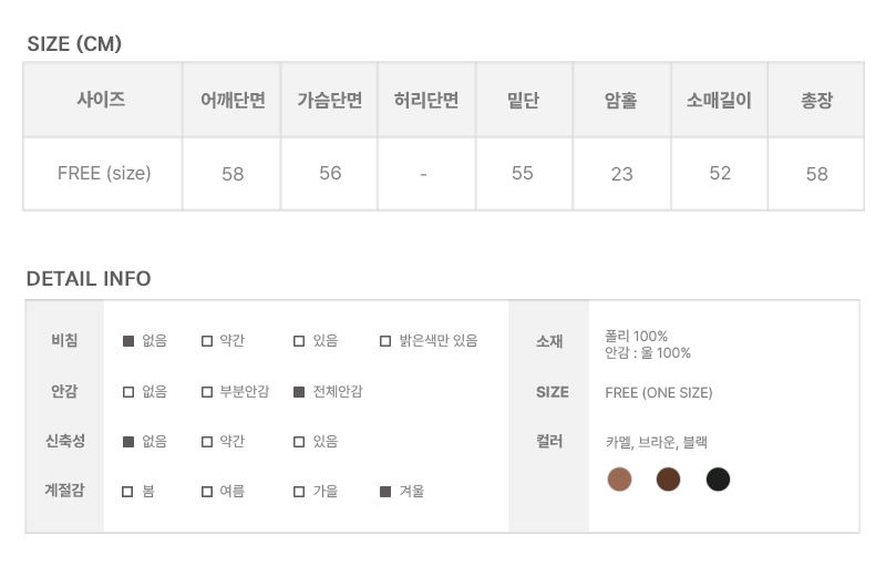 소재 : 폴리에스터 100%, 안감: 울 100%