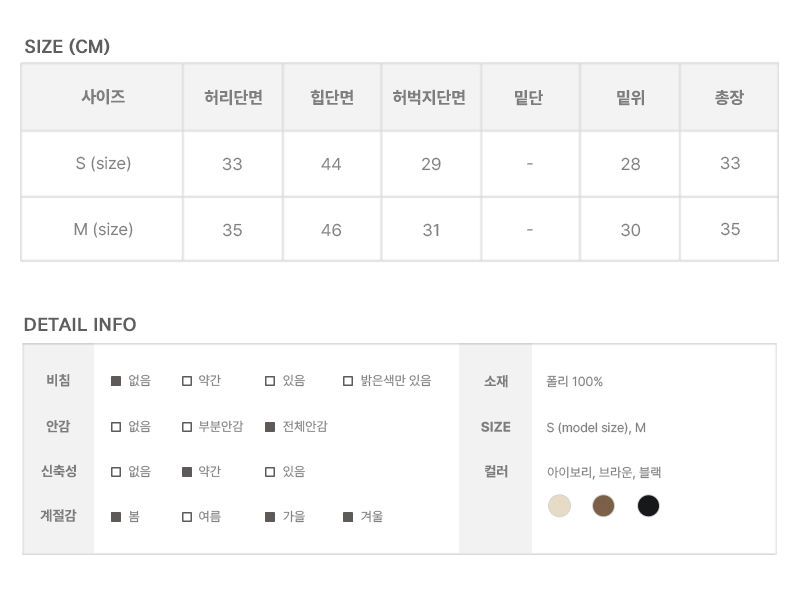| 제품 측정 방법에 따라 1~3cm 오차가 발생할 수 있으며, 사이즈는 단면으로 측정됩니다 | |||||