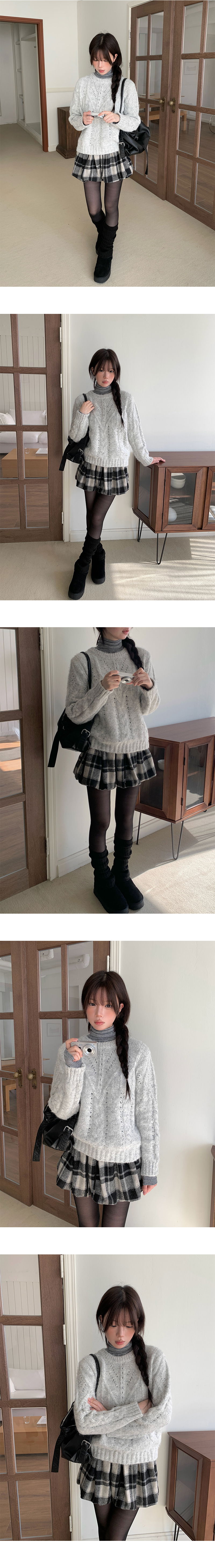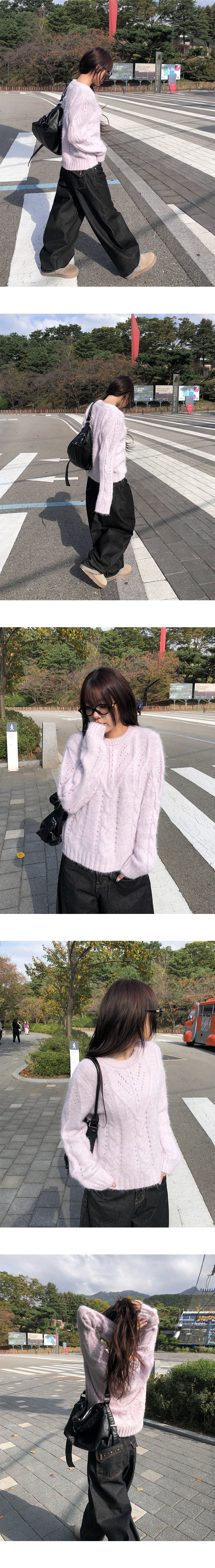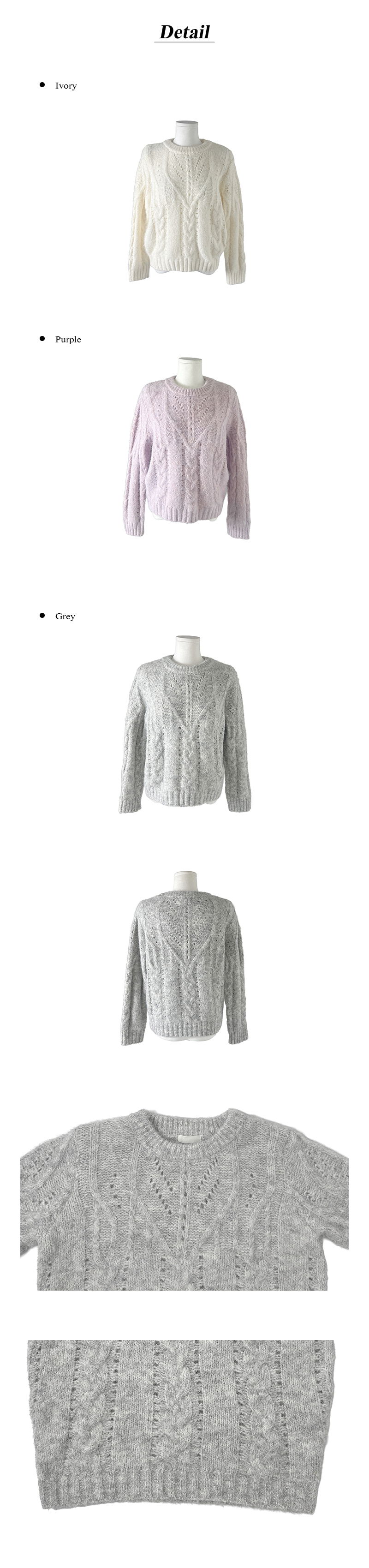 꽈배기 짜임에 펀칭을 넣은 니트 원단으로