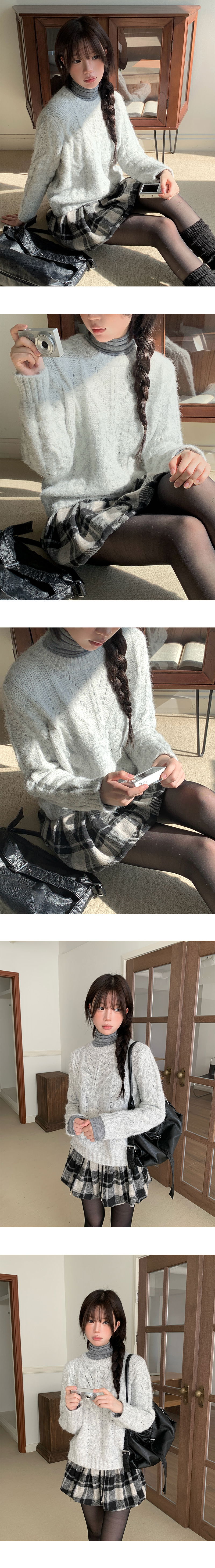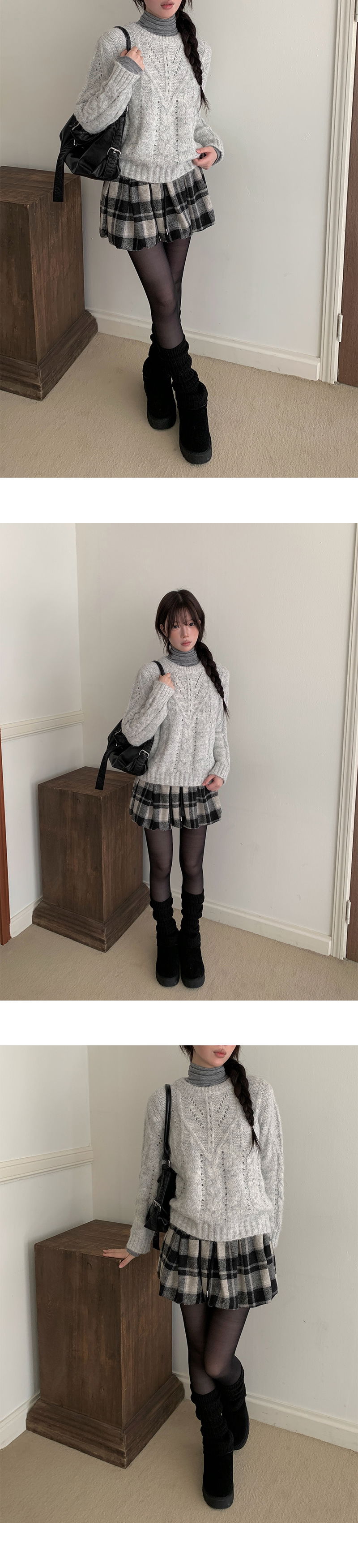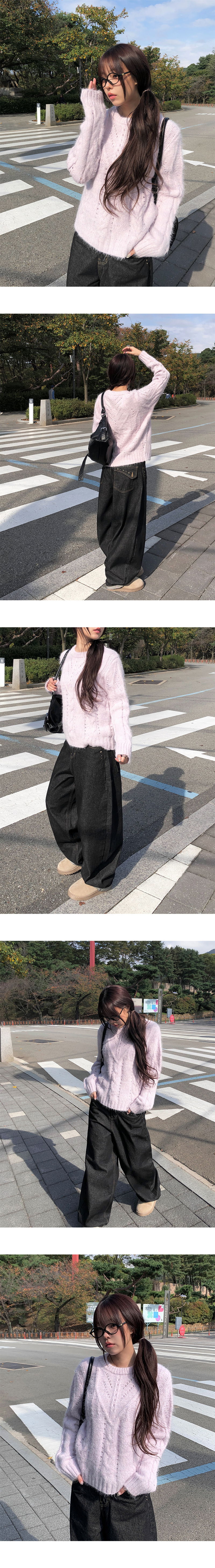 꽈배기 짜임에 펀칭을 넣은 니트 원단으로