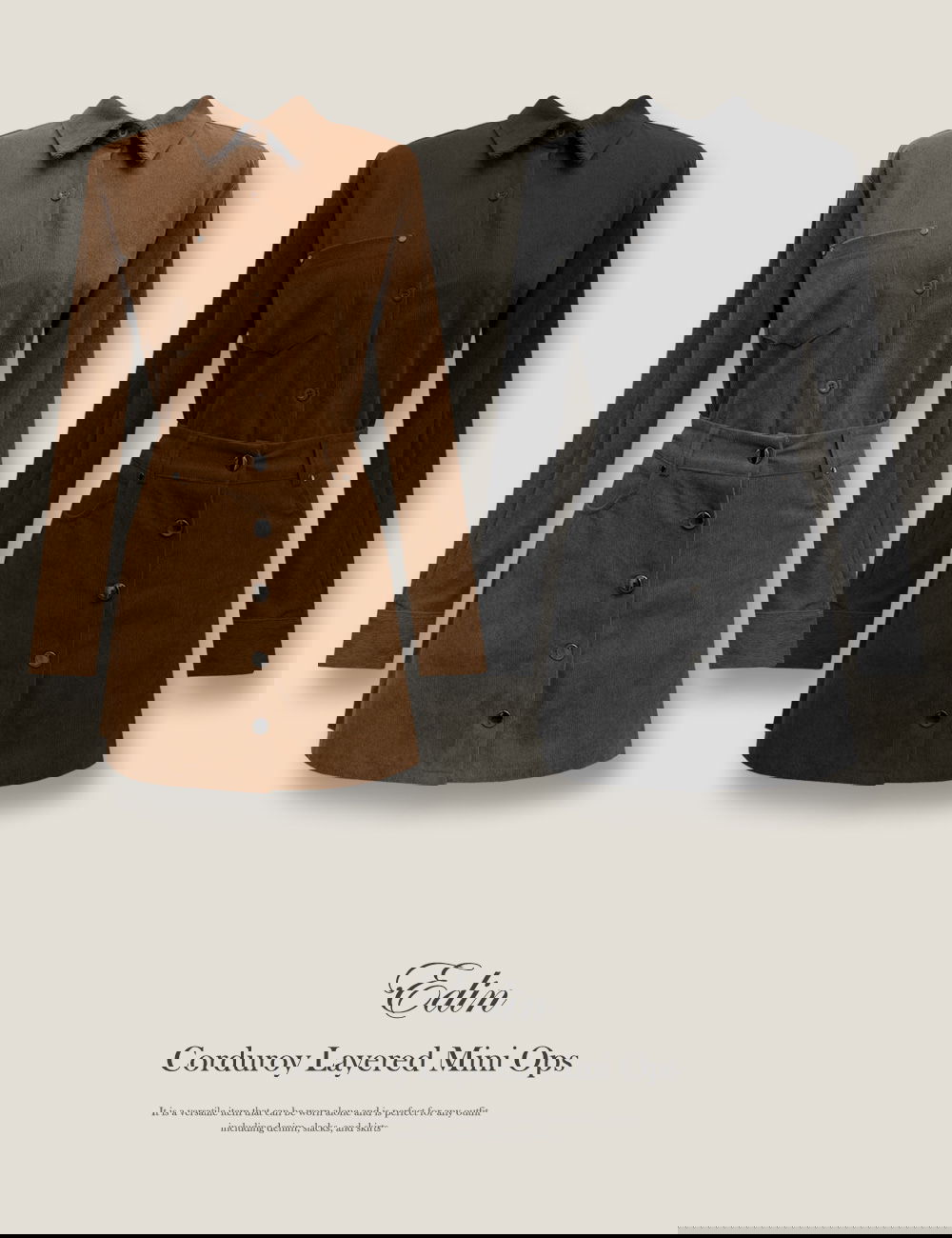 따뜻하고 포근한 코듀로이 소재로 제작되어 가을/겨울 시즌에 정말 잘 어울려요.