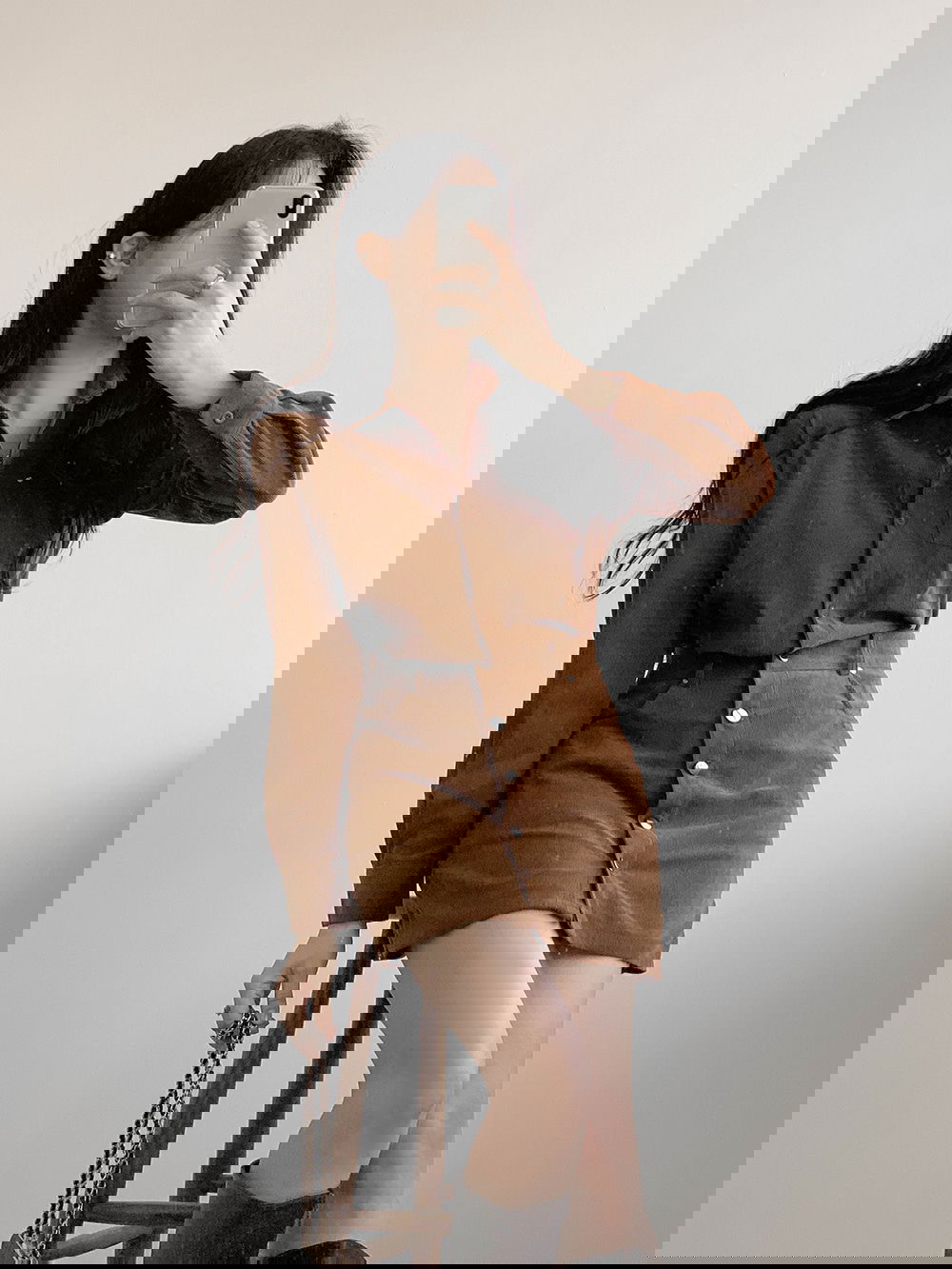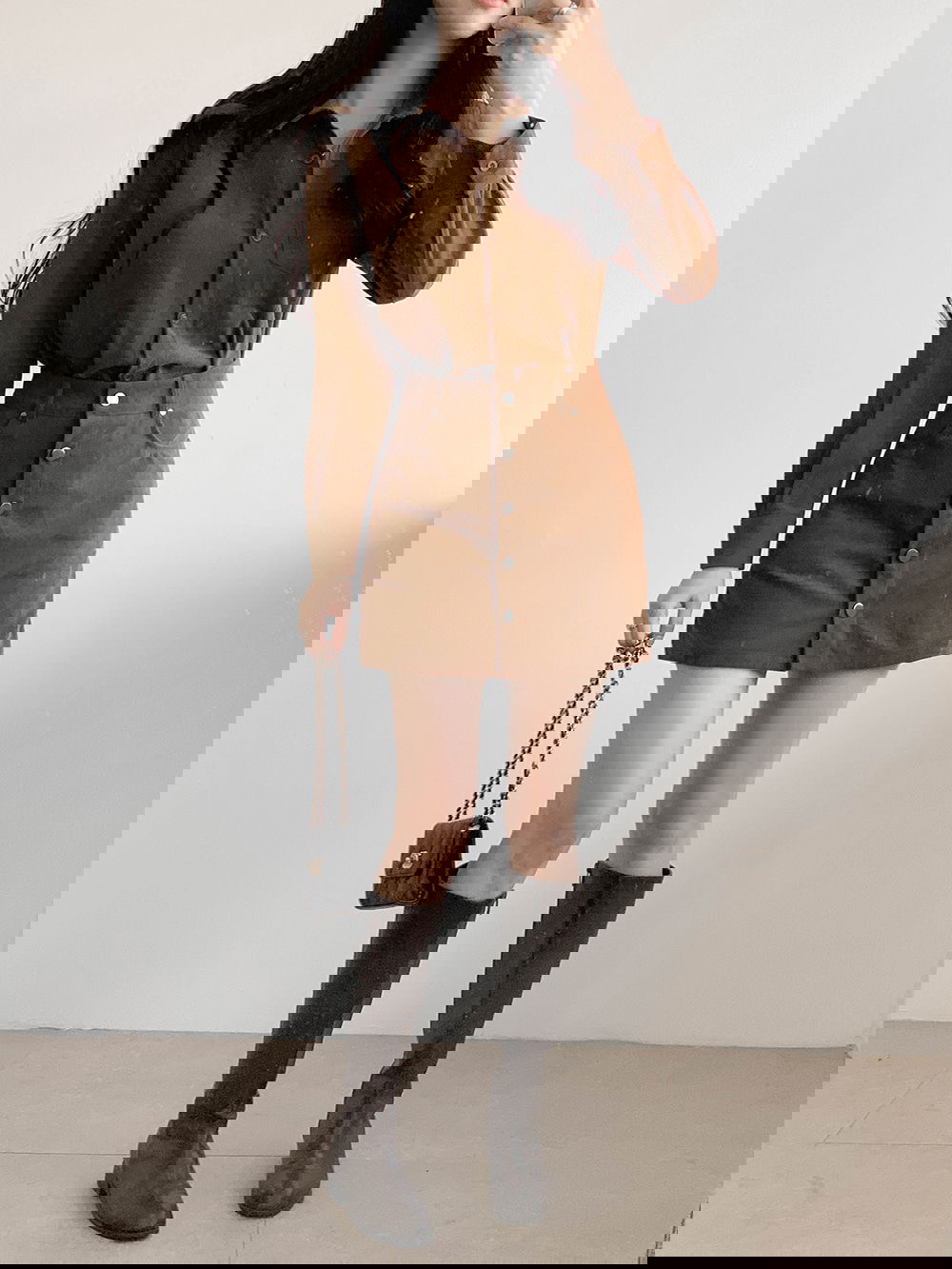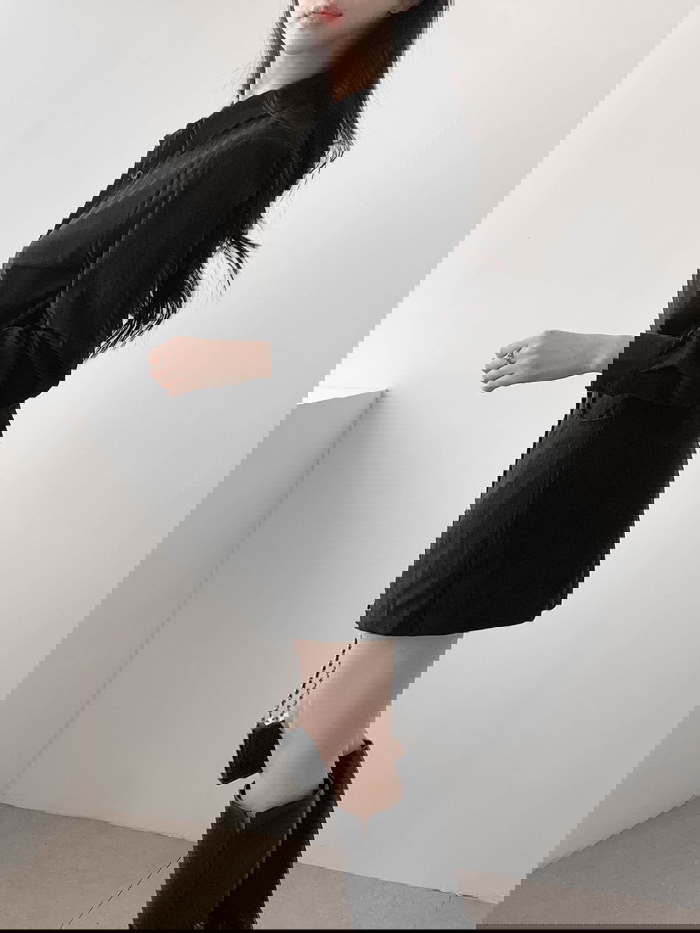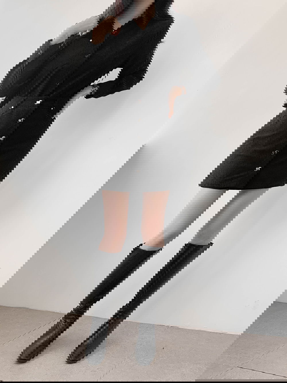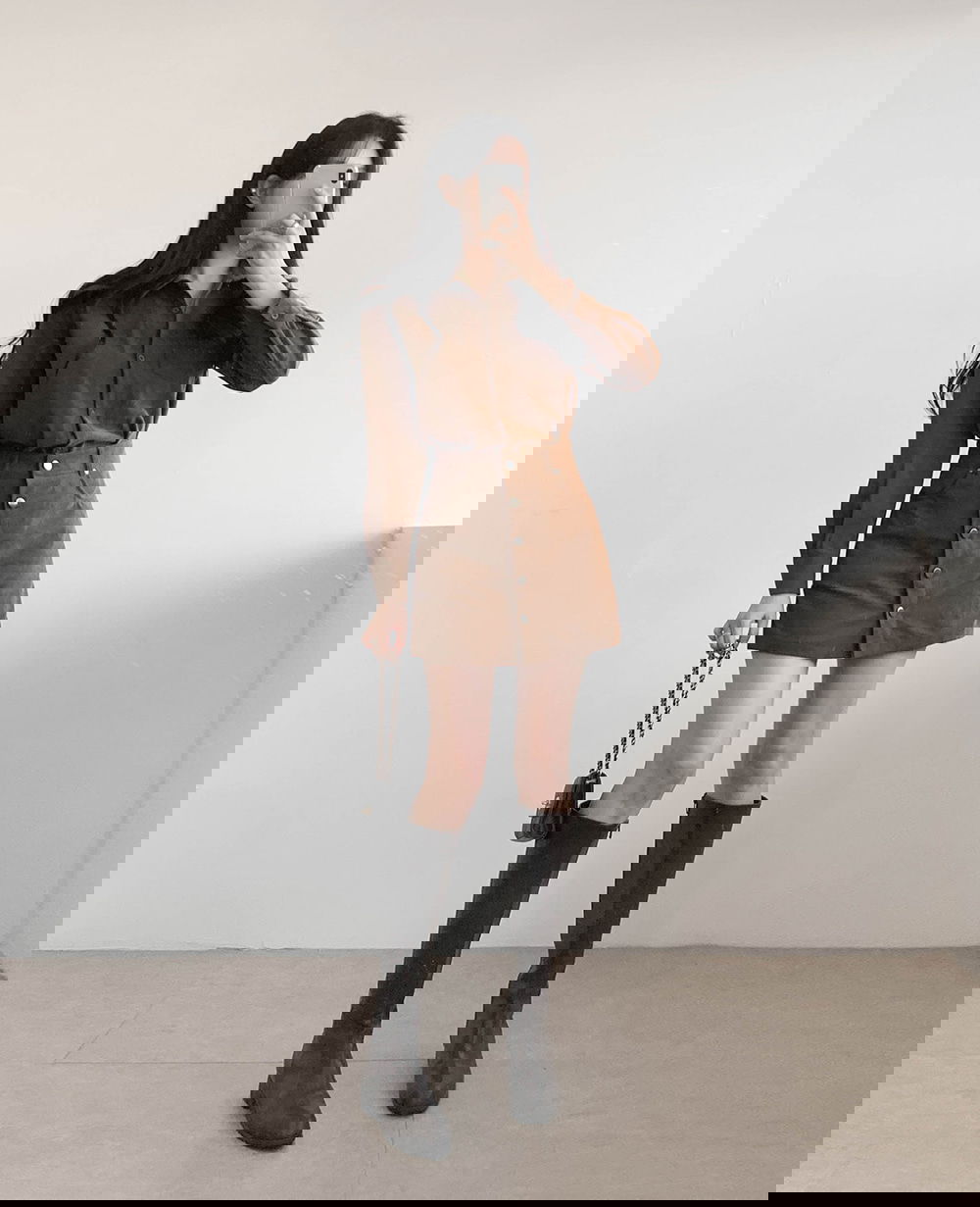 허벅지 중간까지 오는 미니 기장이라 다리가 길고 슬림해 보이는 효과가 탁월해요.