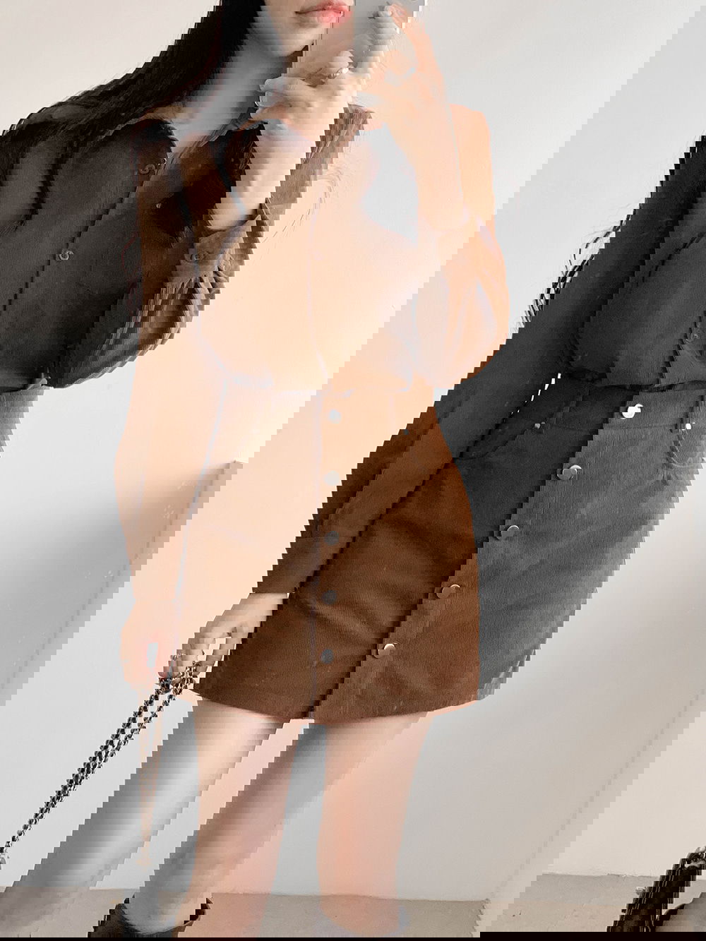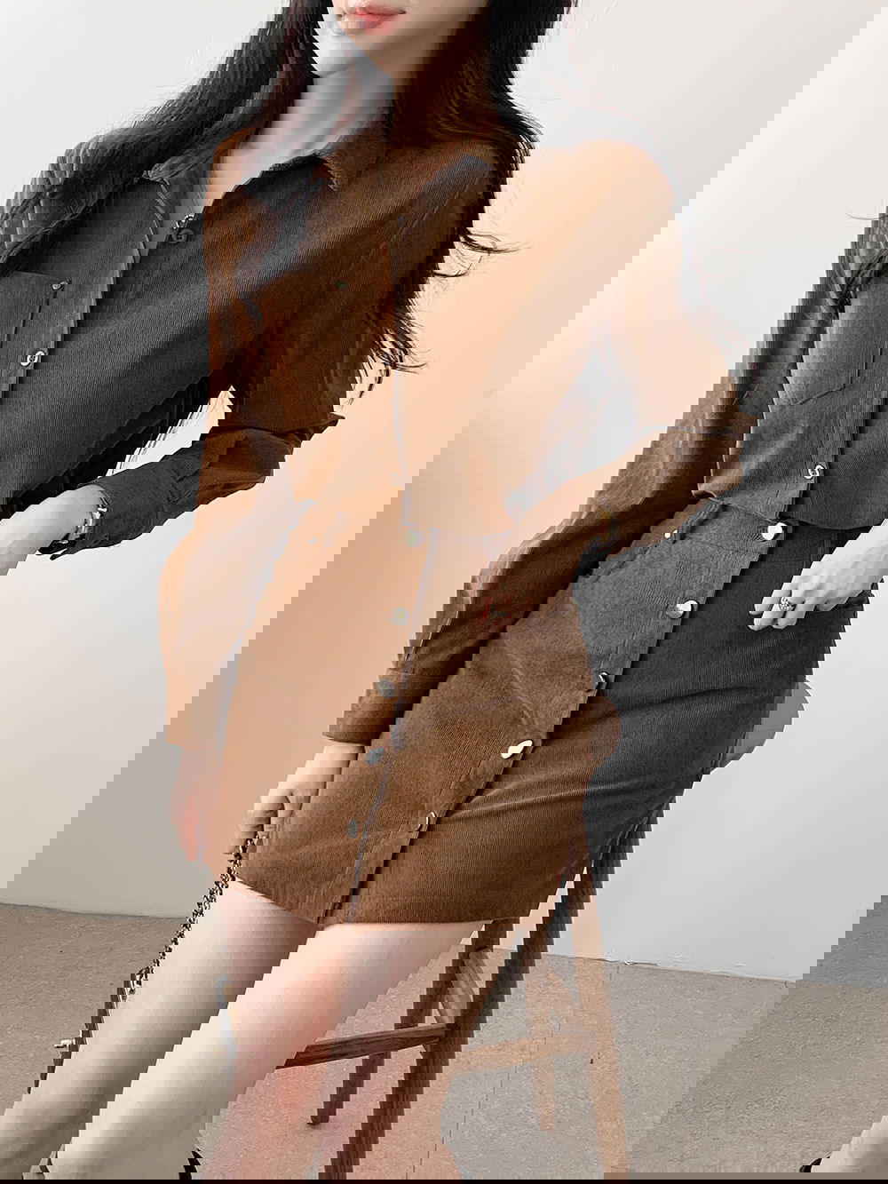 이 코듀로이 원피스는 한 벌만으로 완벽한 스타일링을 완성해 줍니다.