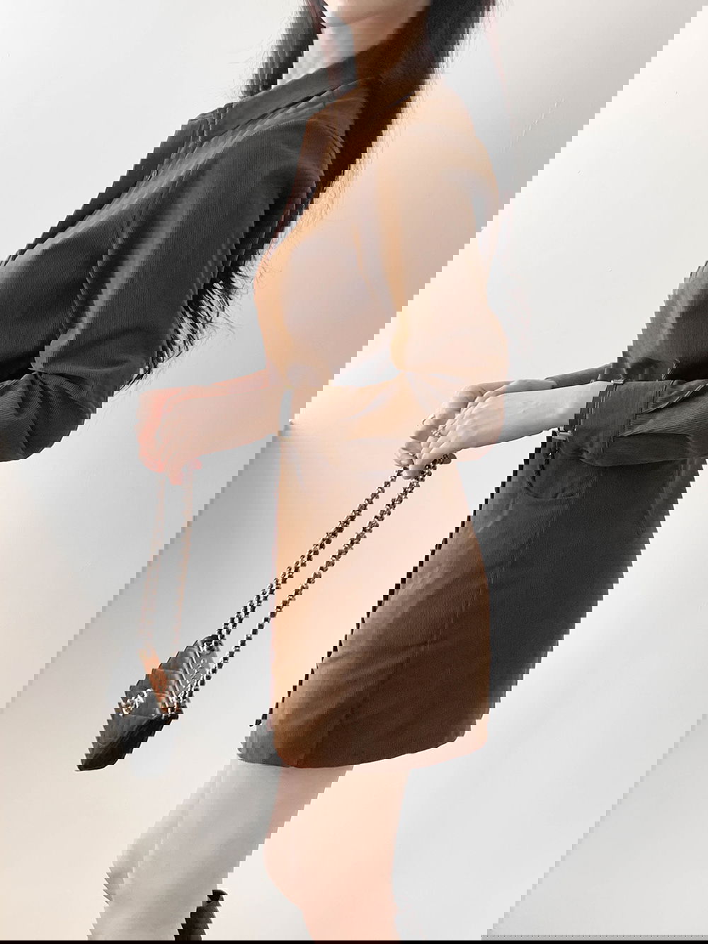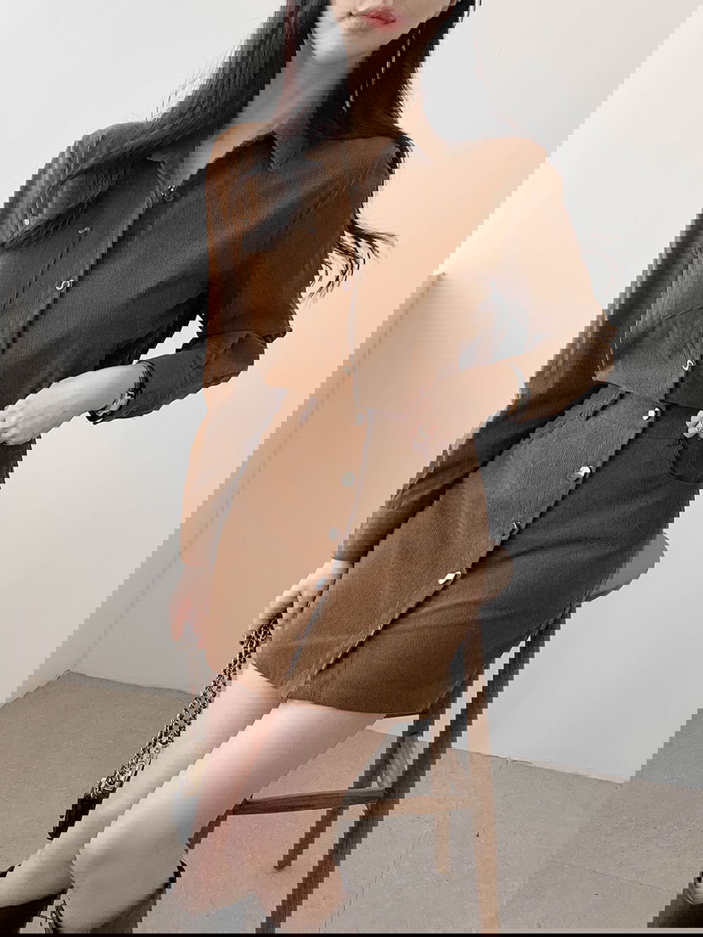 특유의 골 간격이 룩에 레트로하면서도 세련된 무드를 더해줍니다.