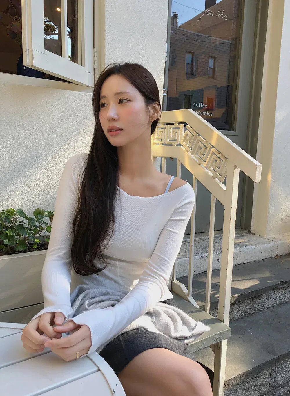 - 쇄골과 숄더 라인이 여리하게 드러나는 페미닌한 오프숄더 디자인