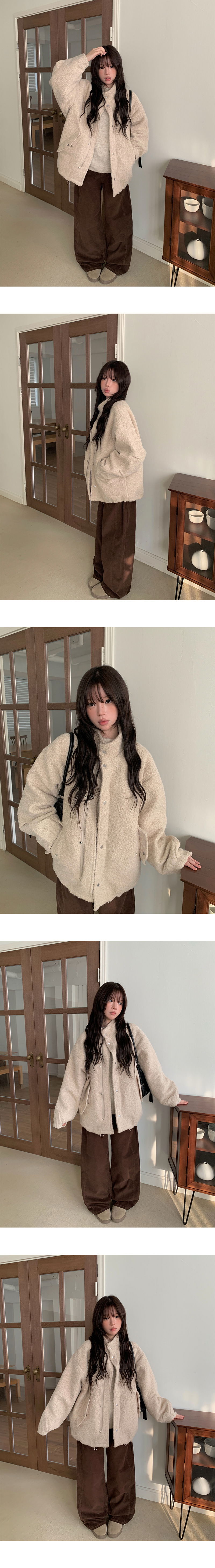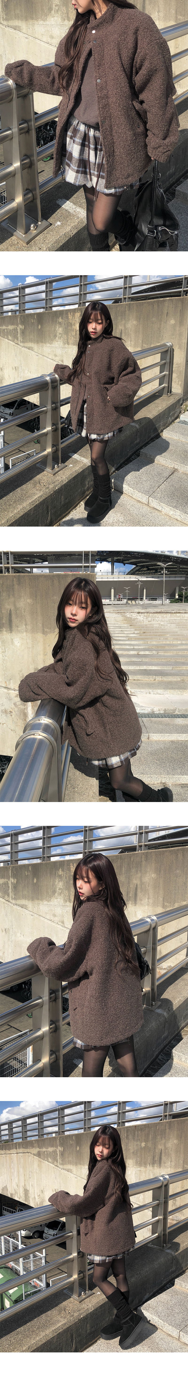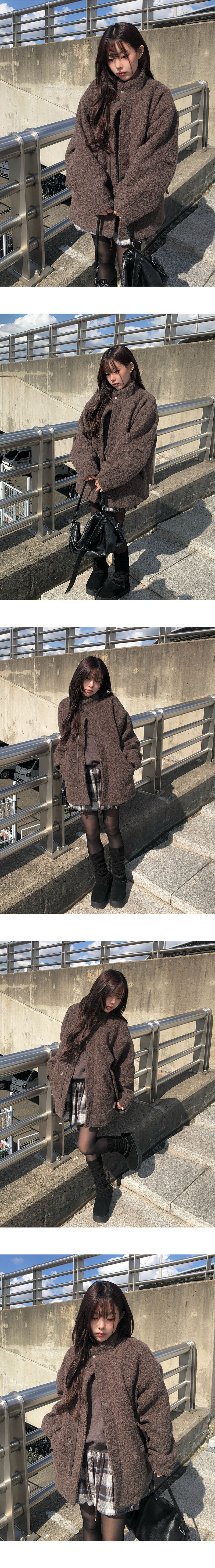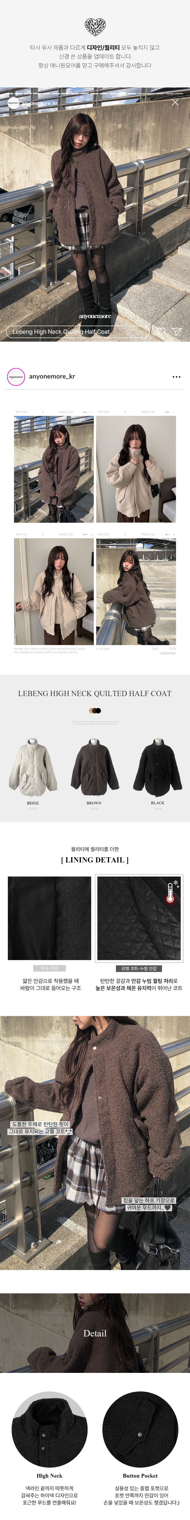 고급스러운 무드의 부클 하이넥 누빔 하프 코트입니다 !