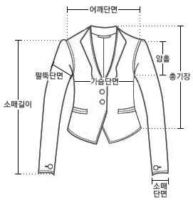 | 사이즈 | 총기장 | 어깨단면 | 가슴단면 | 암홀 | 팔뚝단면 | 소매길이 | 소매단면 |