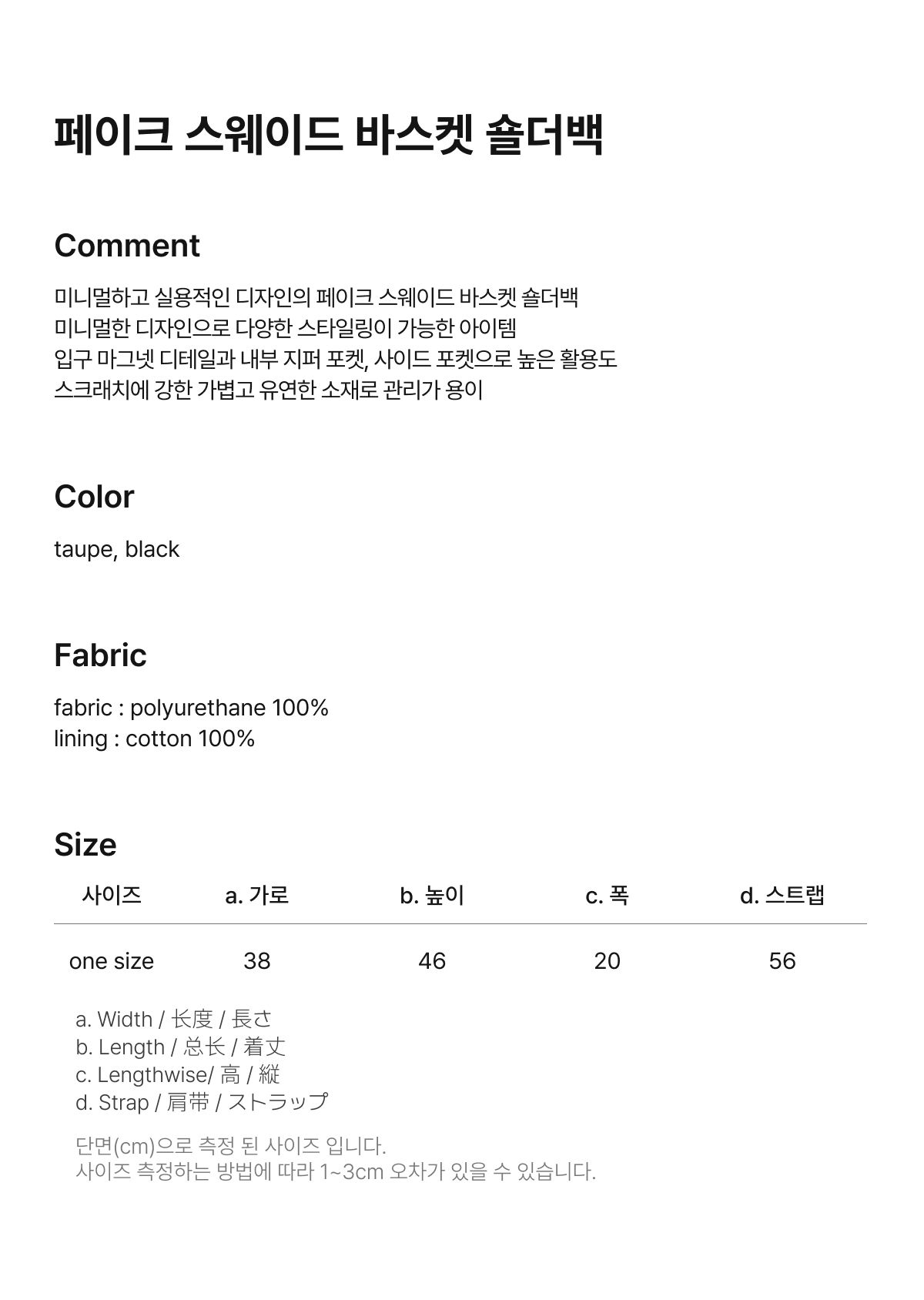 | 제품 측정 방법에 따라 1~3cm 오차가 발생할 수 있으며, 사이즈는 단면으로 측정됩니다 | ||||