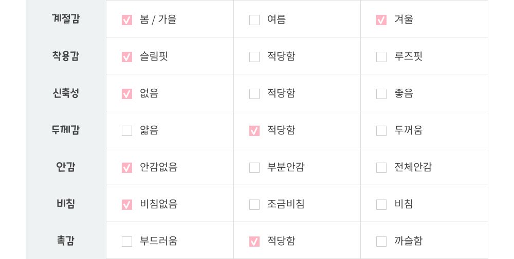 | 제품 측정 방법에 따라 1~3cm 오차가 발생할 수 있으며, 사이즈는 단면으로 측정됩니다 | |||||