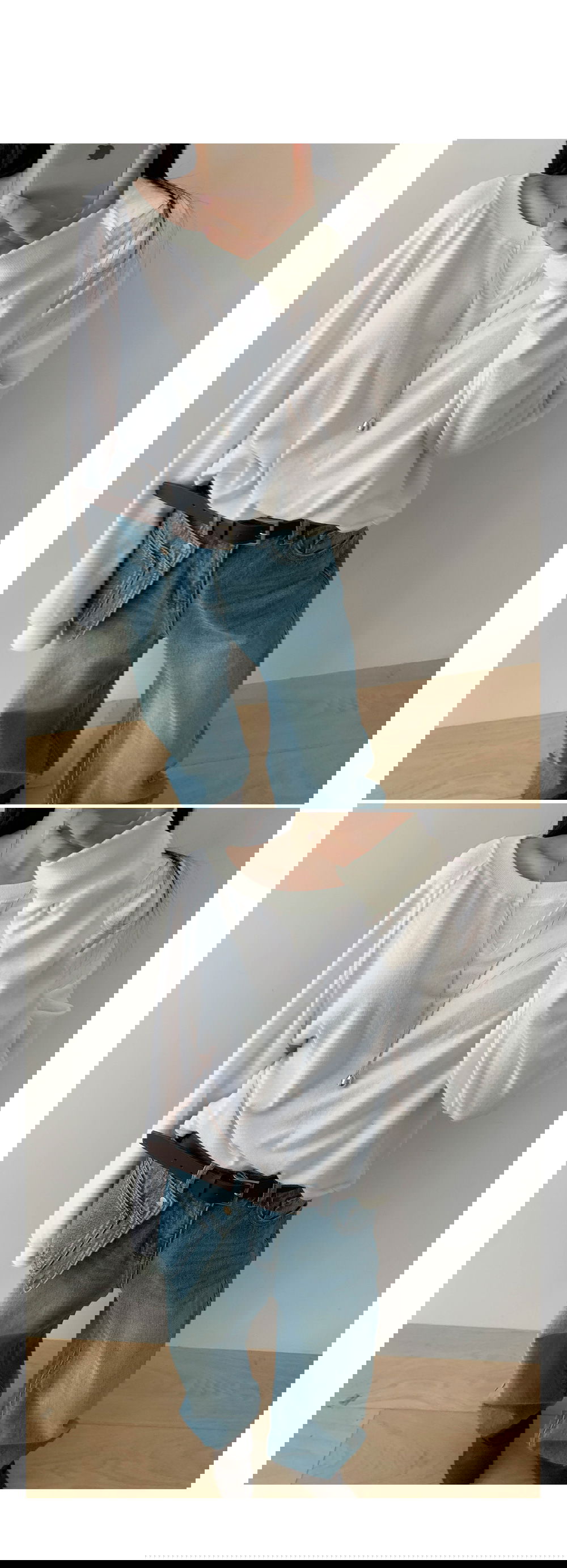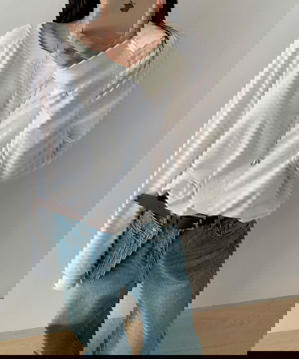 적당히 여유있는 핏에 와이드한 라운드넥으로