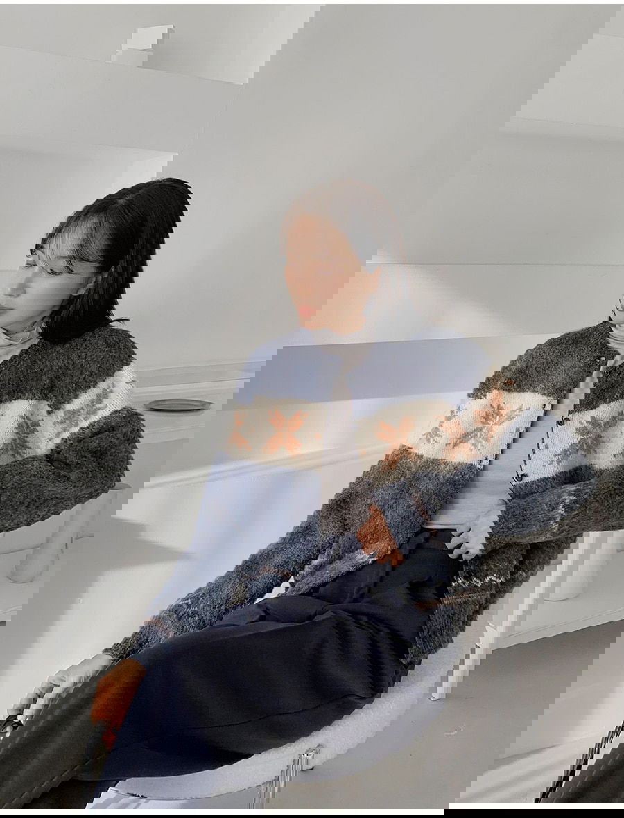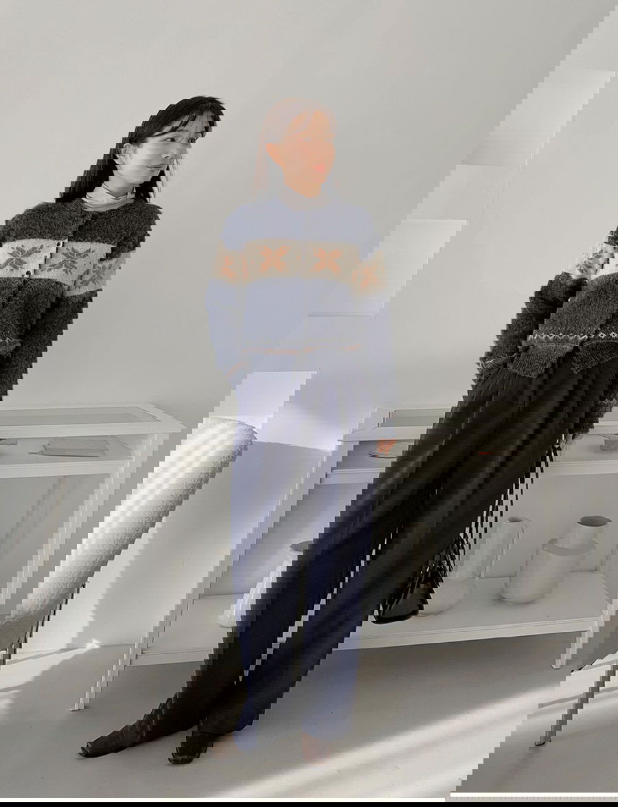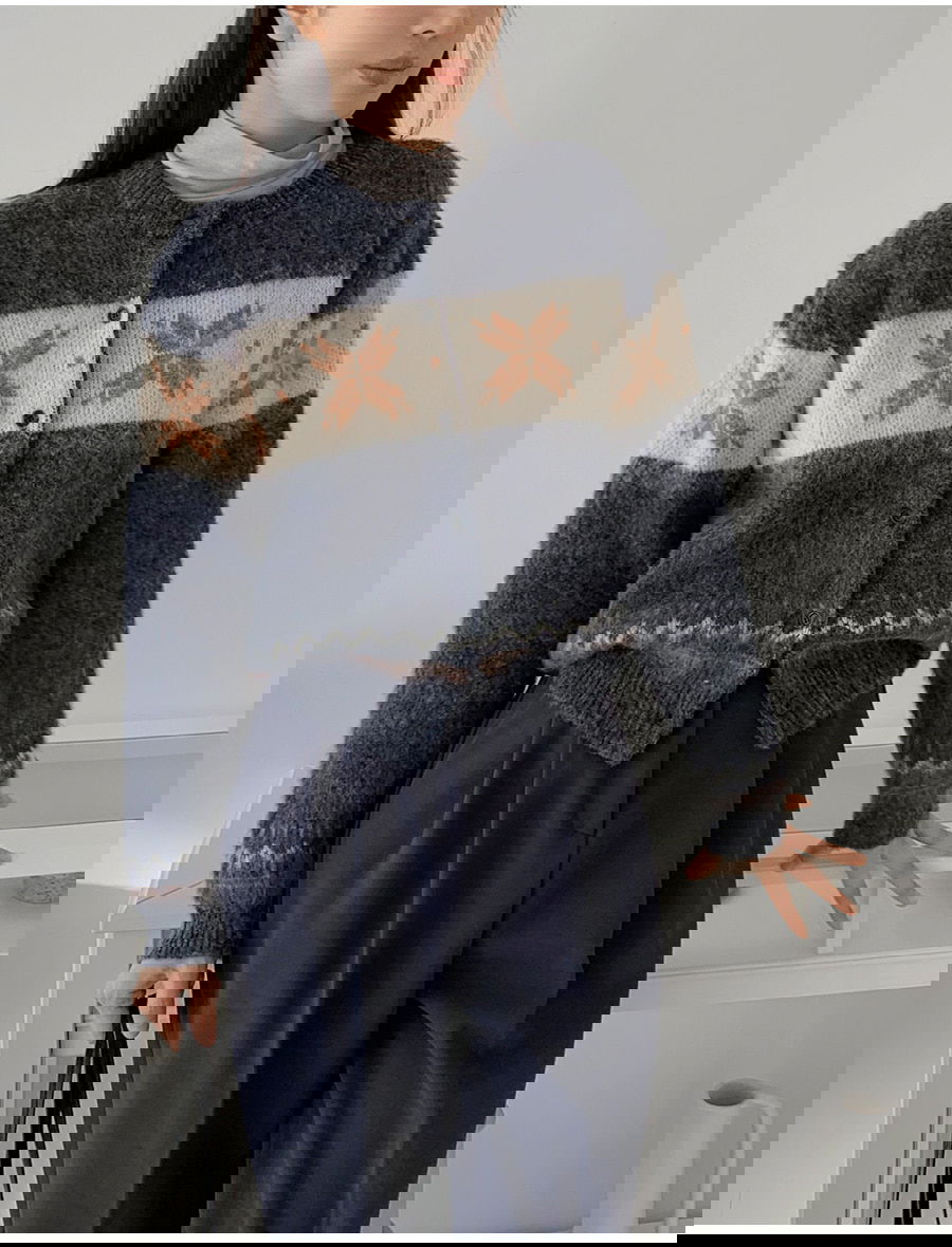 - 프런트와 백사이드 눈꽃 자가드 패턴으로 캐주얼한 디자인입니다.