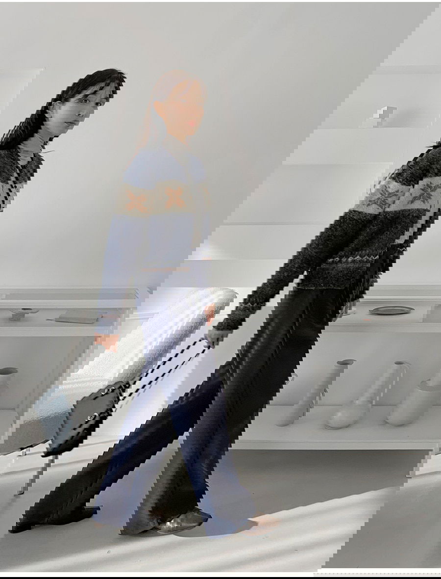 - 손등을 덮는 여리한 소매 기장감입니다.