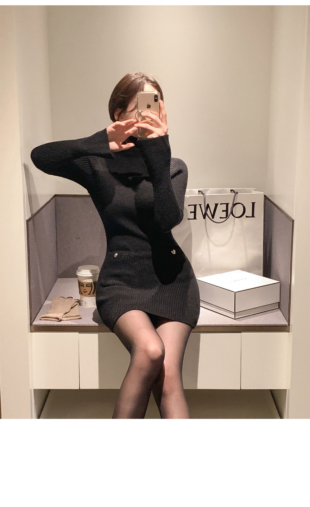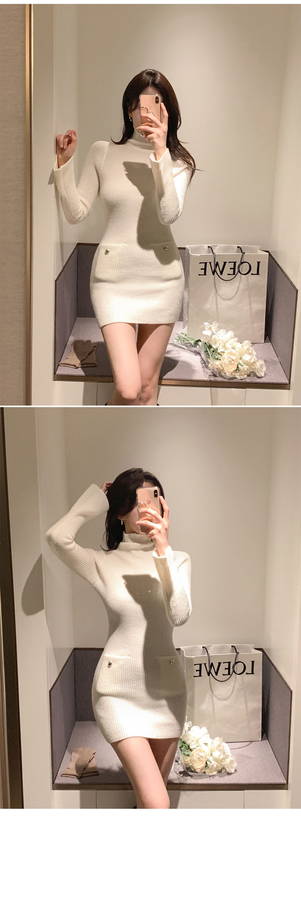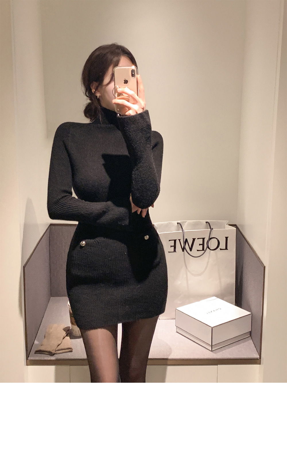전체적으로 바디라인에 슬림하게 핏되는 원피스로