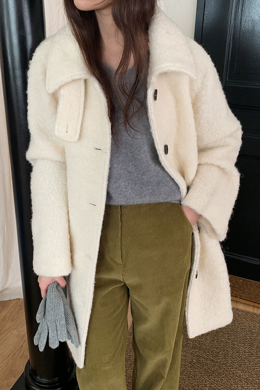 - [MADE]빈티지 라운드숄더 울 롱코트(울50%)