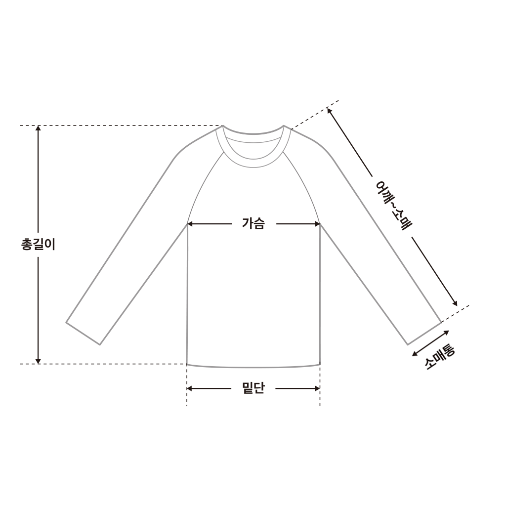 | 총장 | 어깨부터 소매길이 | 소매통 | 가슴단면 | 밑단단면 | ||