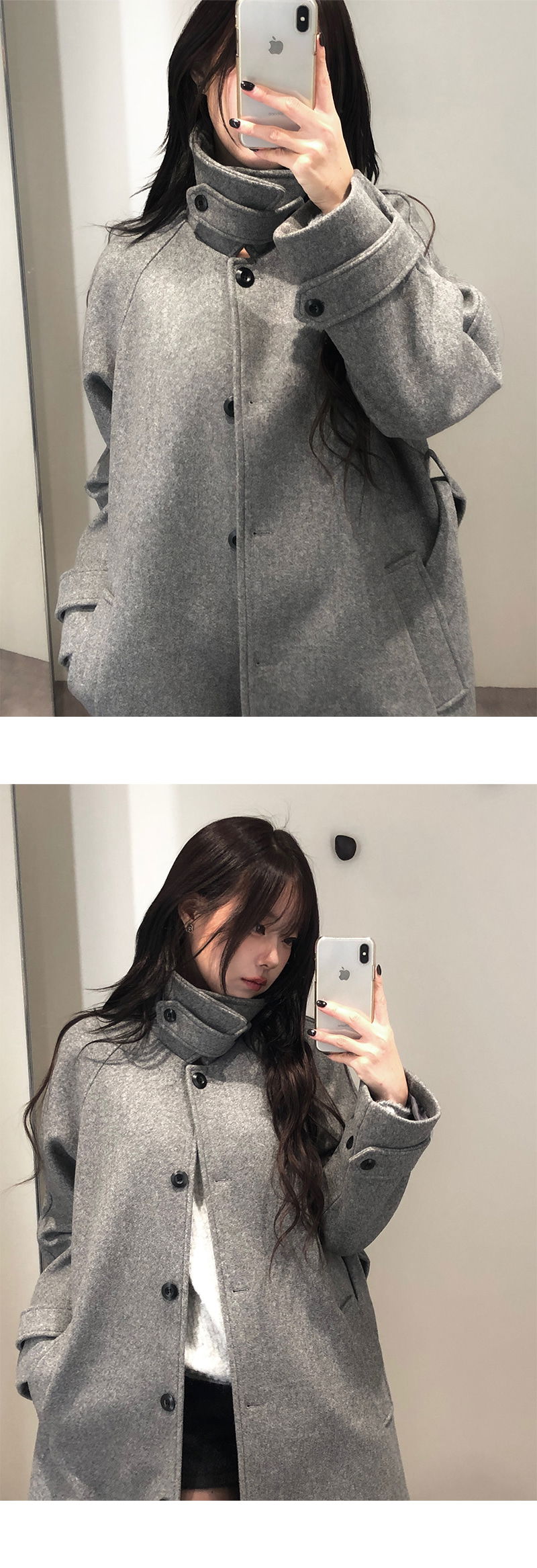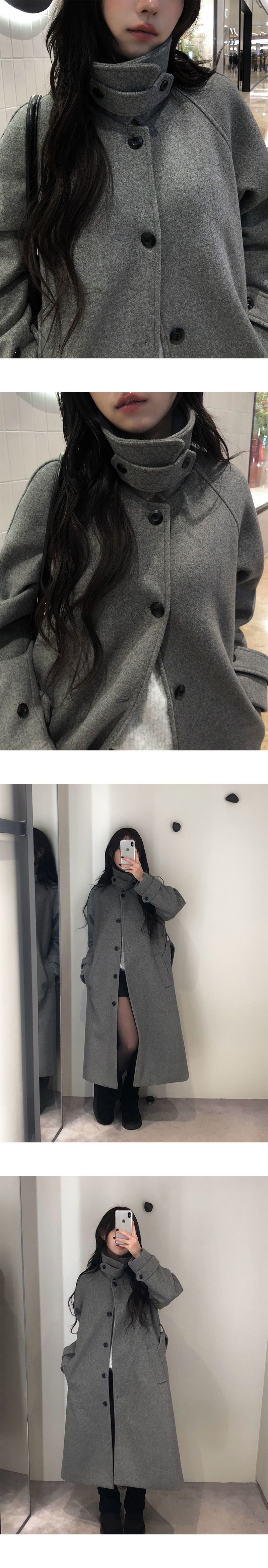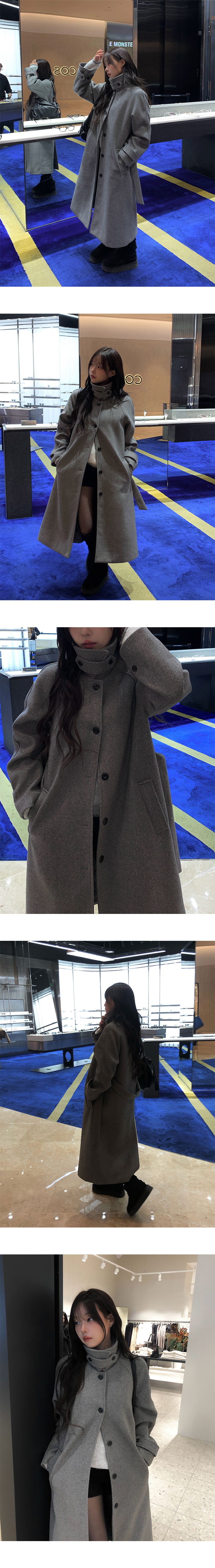 하이넥 클립 버튼으로 멋스럽게 넥라인을 감싸주어