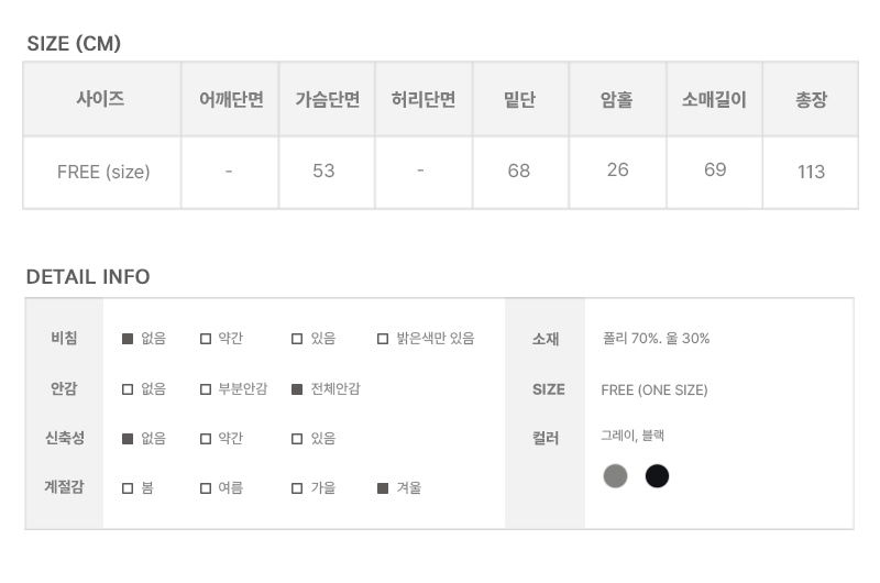 한겨울까지 따뜻하게 착용하실 수 있어요 !
