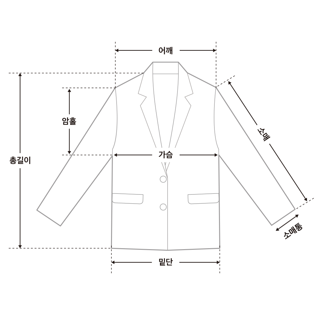 어깨42/소매61/소매통15/암홀26/가슴54/밑단56/총장66