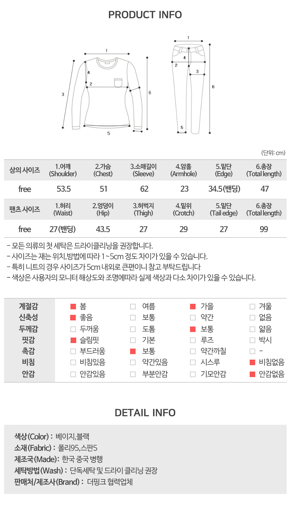 · 모든 의류의 첫 세탁은 드라이크리닝을 추천하며, 세탁 후 착용 부탁 드립니다.