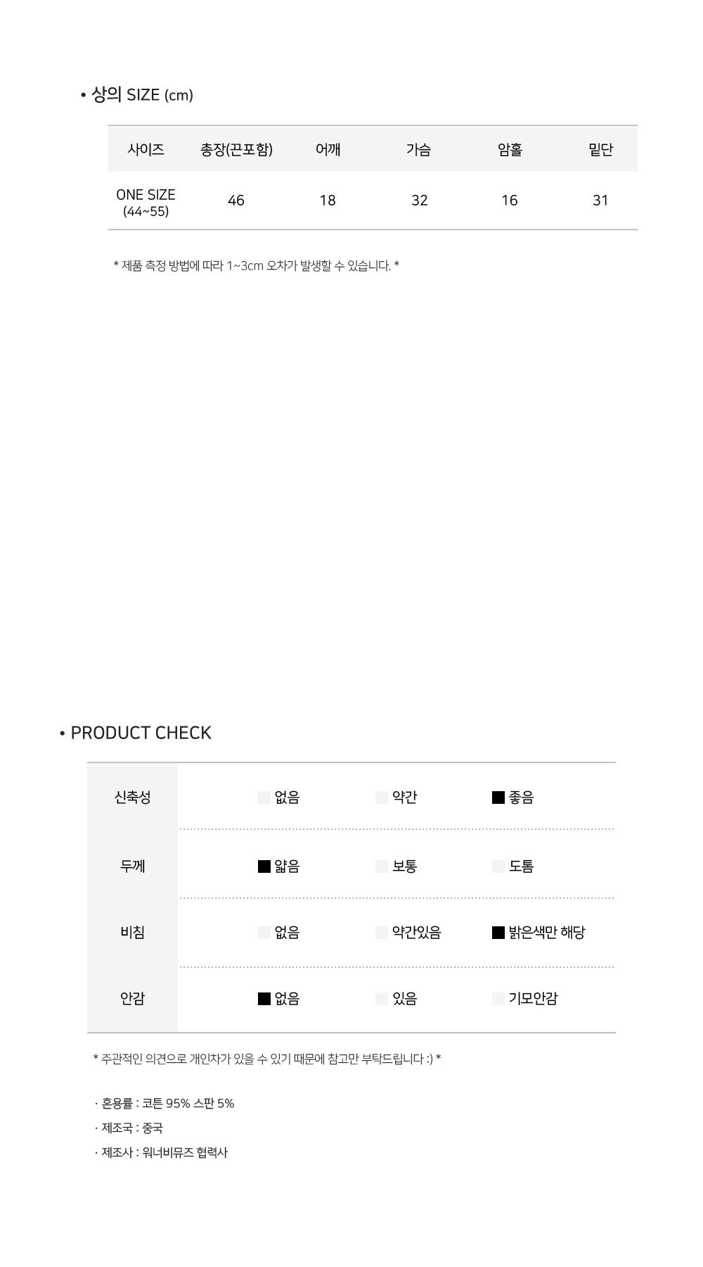 소재 : 면 95%, 스판덱스 5%