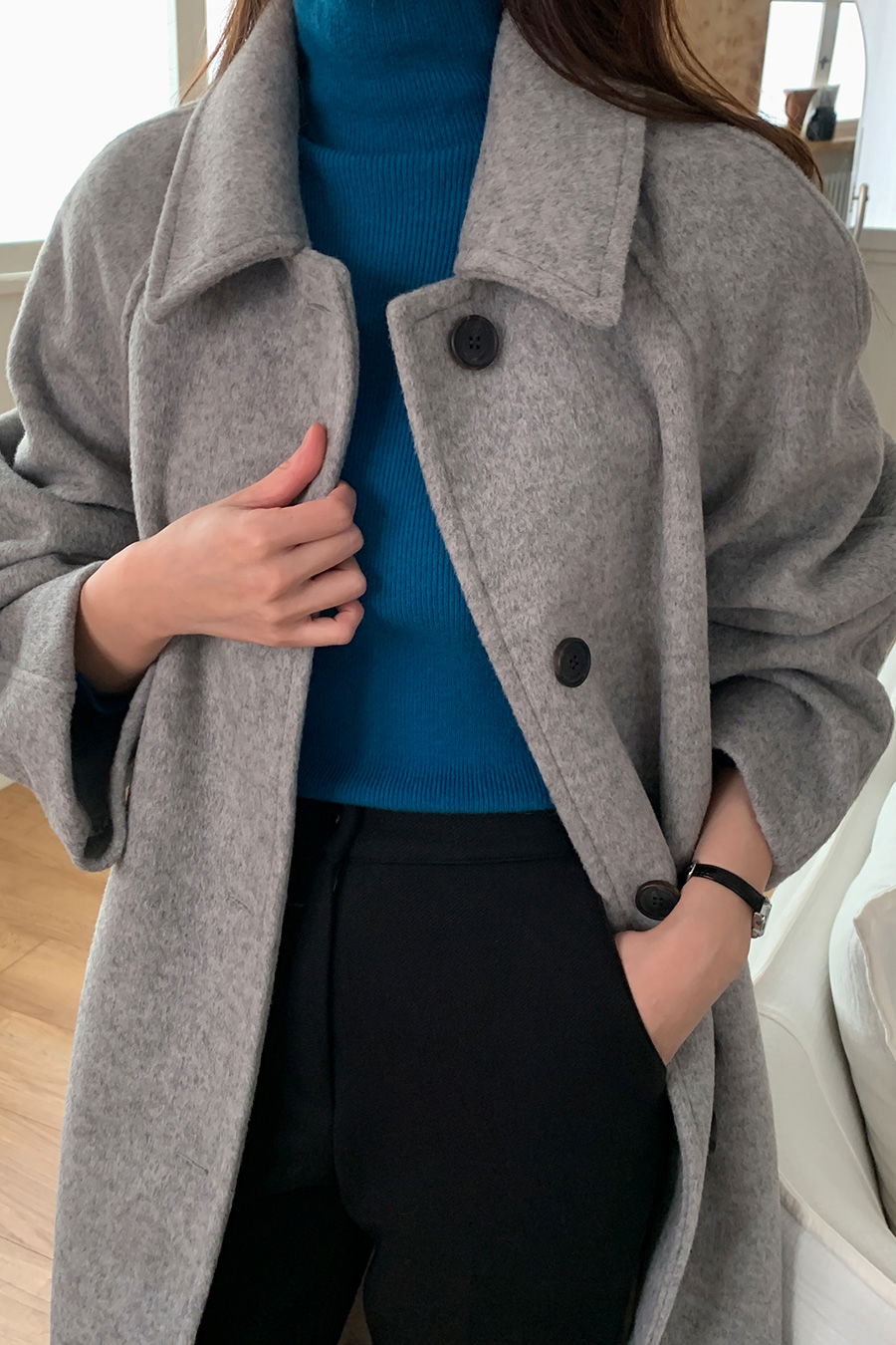 소재 : 폴리에스터 75%, 울 10%, 아크릴 10%, 나일론 5