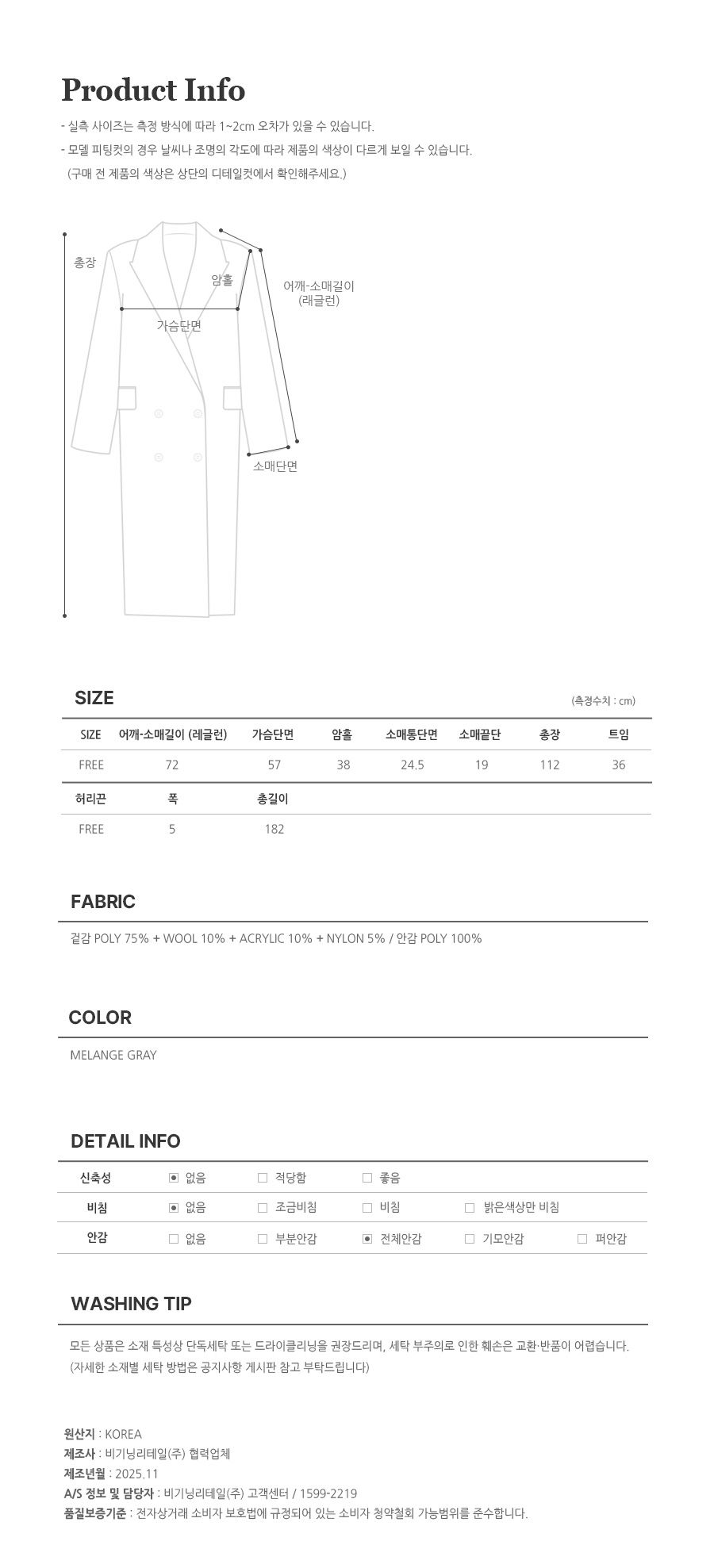 · 모든 의류의 첫 세탁은 드라이크리닝을 추천하며, 세탁 후 착용 부탁 드립니다.