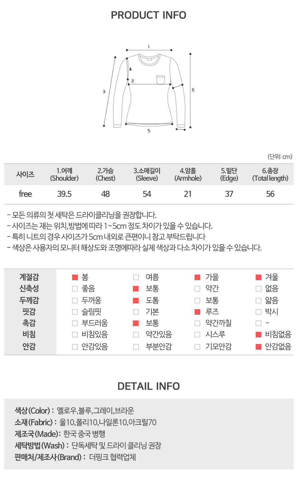 소재 : 울 10%, 폴리 10%, 나일론 10%, 아크릴 70%