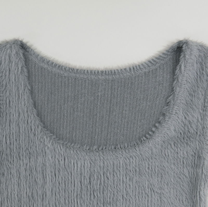 - 존재감 있게 트여진 각진 스퀘어 넥으로 넥 선을 여리하게 표현