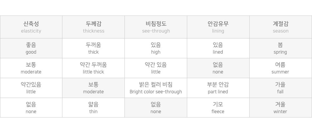 | 제품 측정 방법에 따라 1~3cm 오차가 발생할 수 있으며, 사이즈는 단면으로 측정됩니다 | ||||||