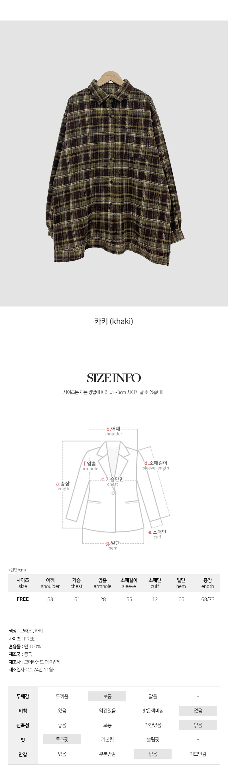 도톰한 두께감으로 체크셔츠 좋아하시는 분들이라면 눈여겨 봐주세요:)