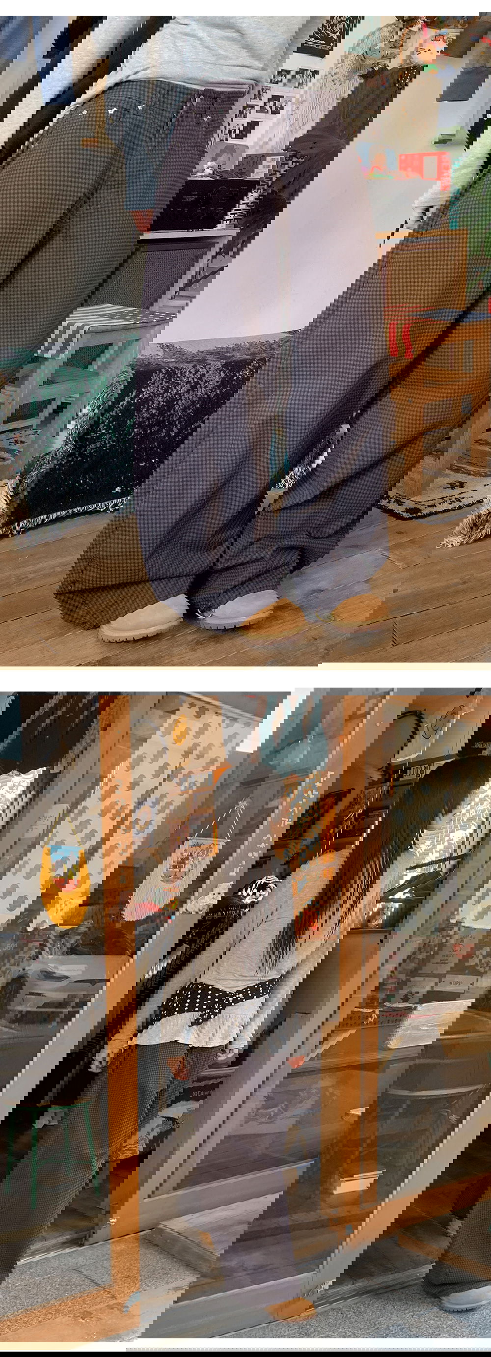 | 사이즈 | 허리 | 힙 | 밑위 | 허벅지 | 밑단 | 총길이 |