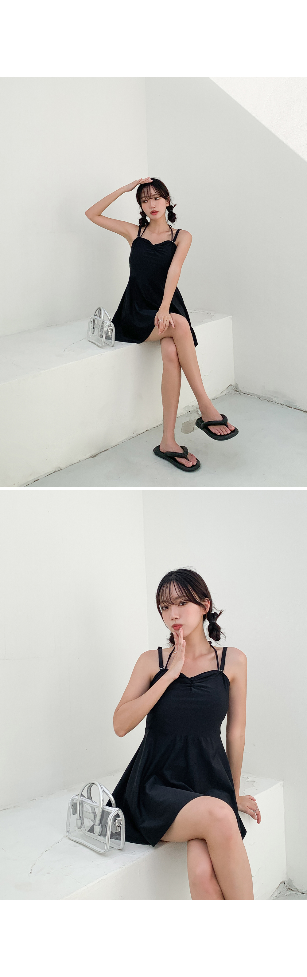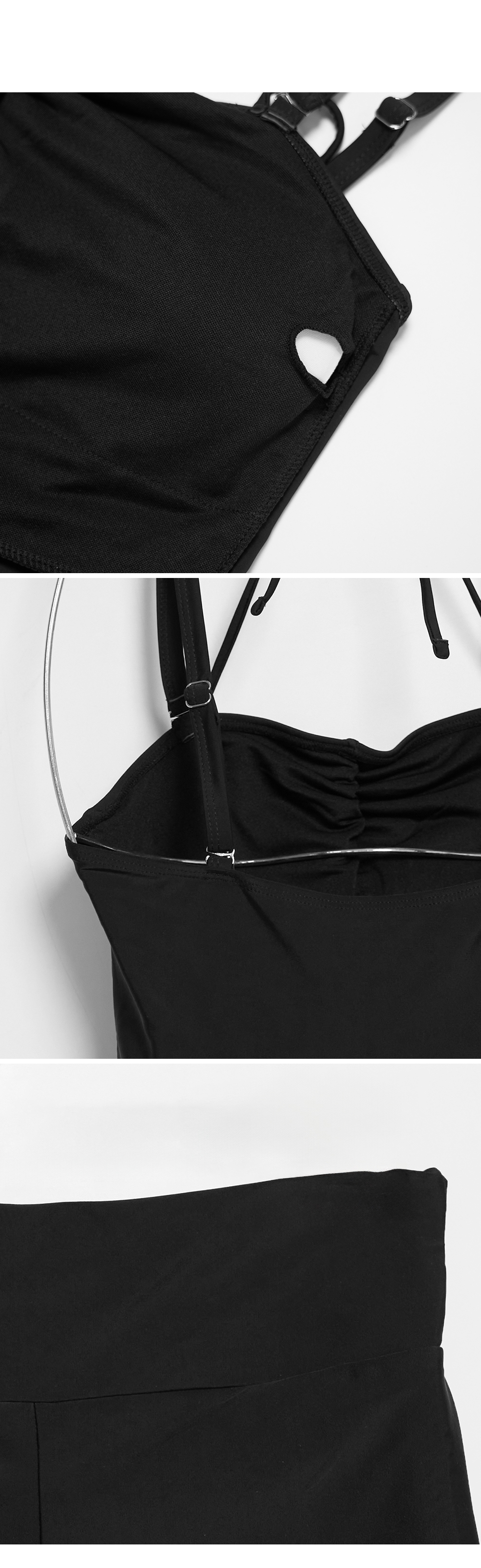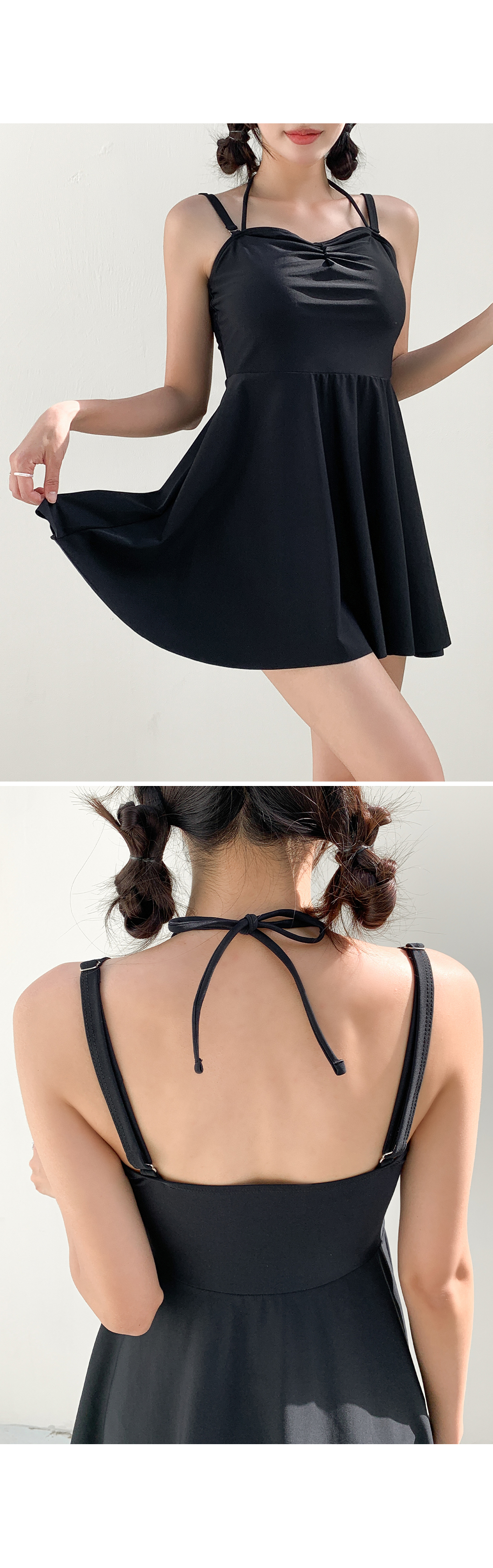 - 홀터넥으로 연출 가능한 프론트 스트링으로