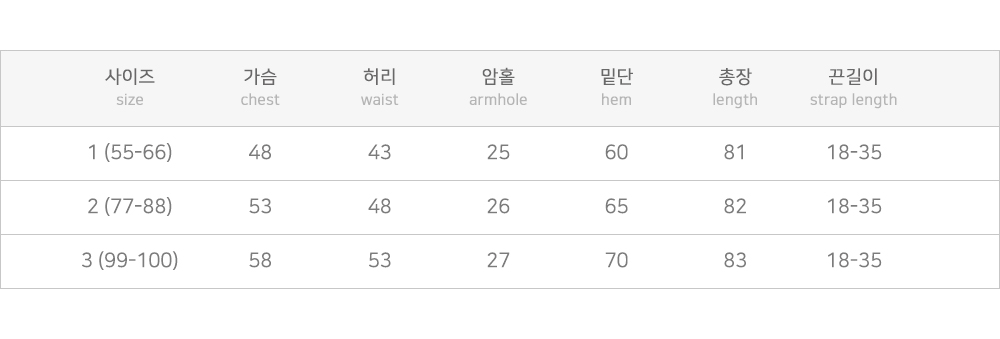 | 사이즈 | 가슴 | 허리 | 암홀 | 총길이 |