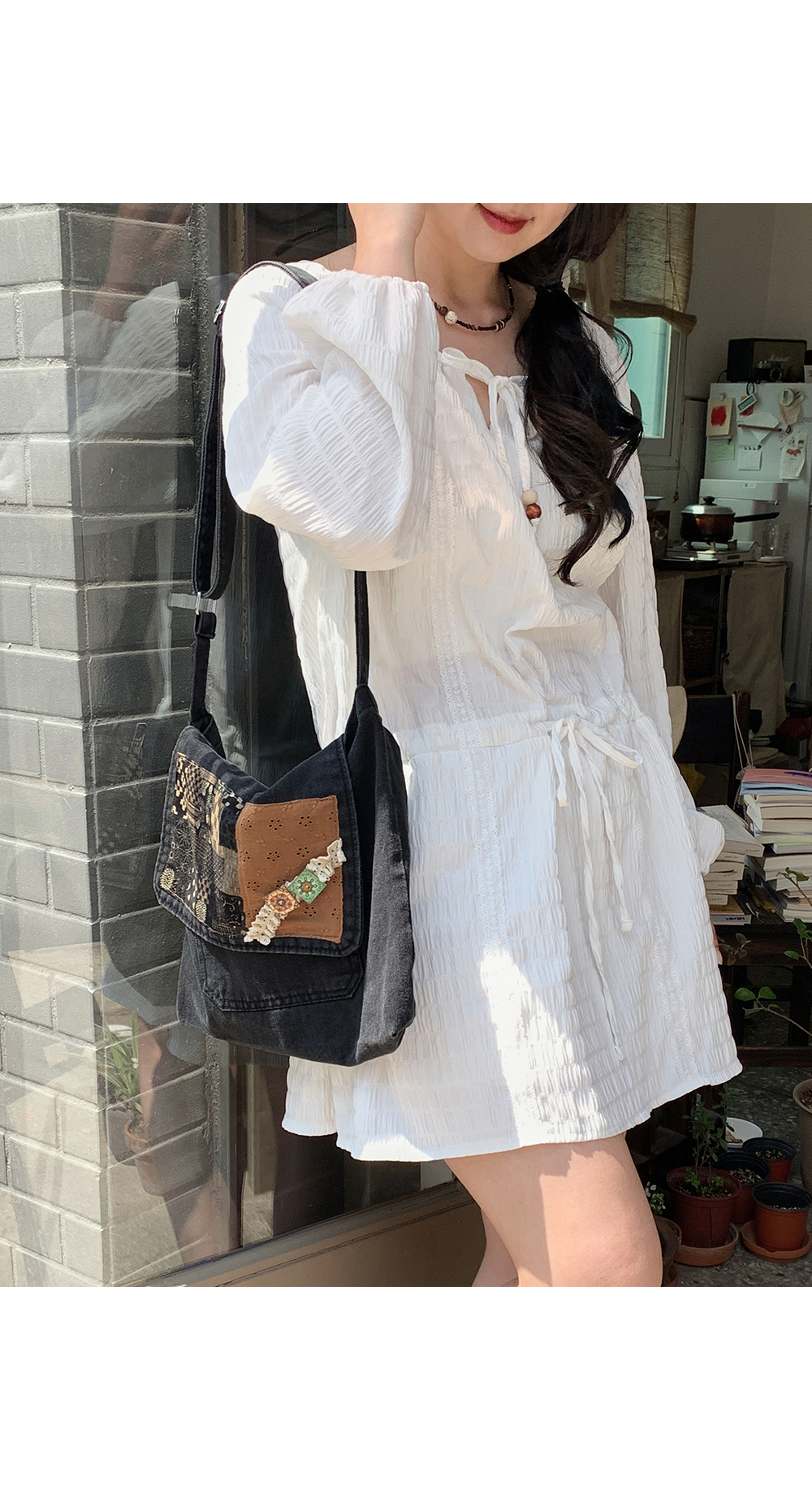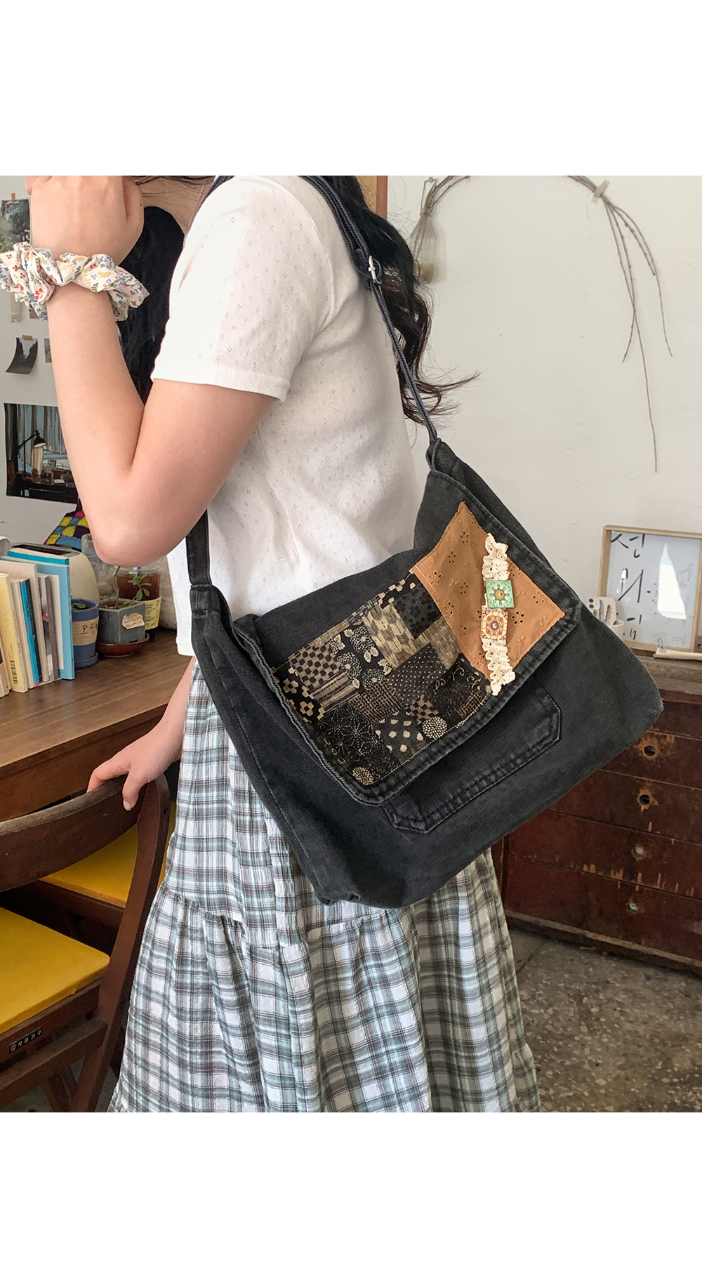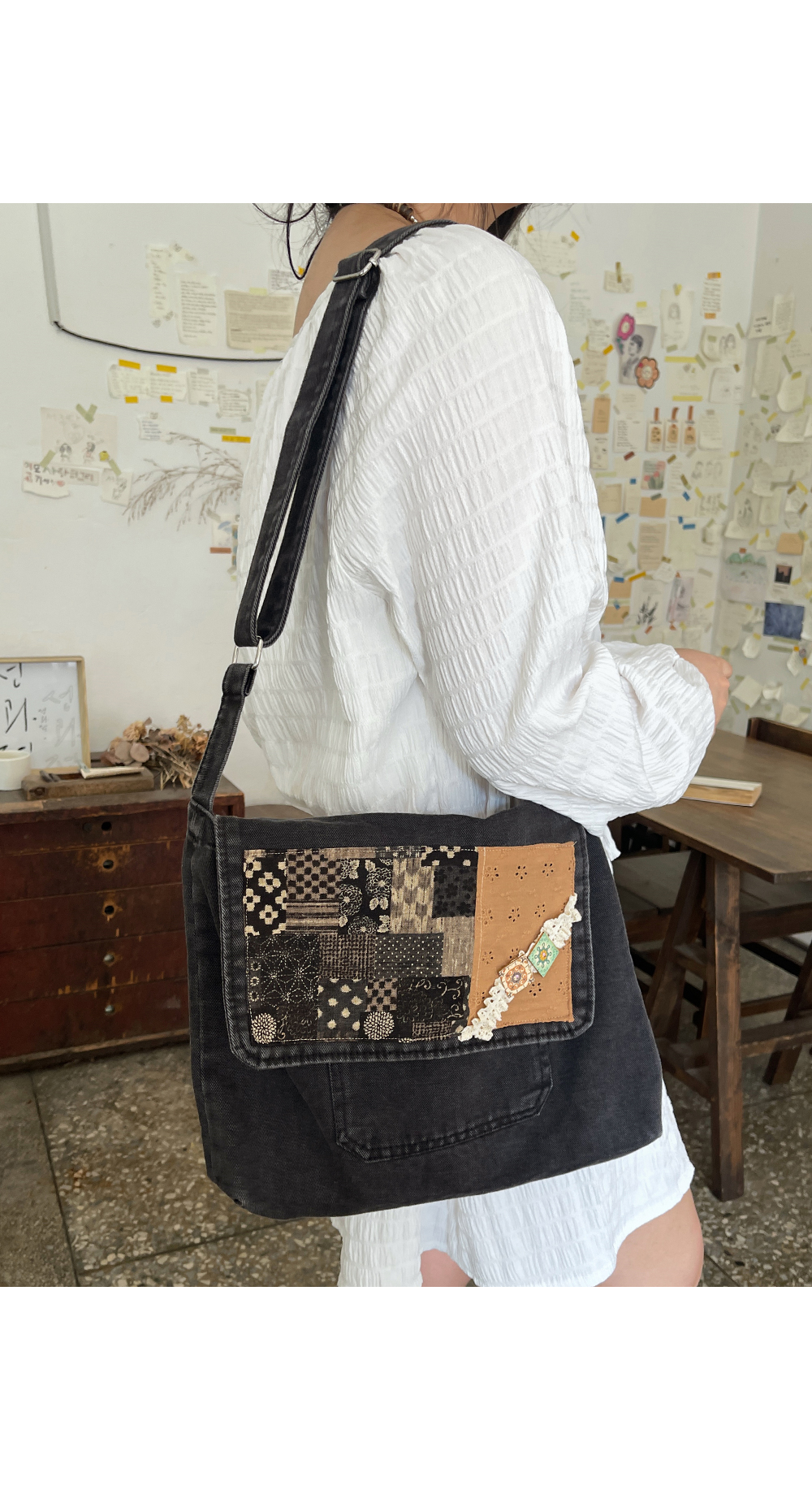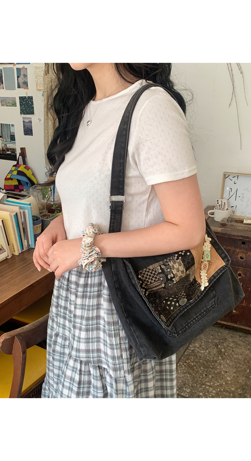 빈티지패치백,데님크로스백,숄더백,데님가방,스퀘어백