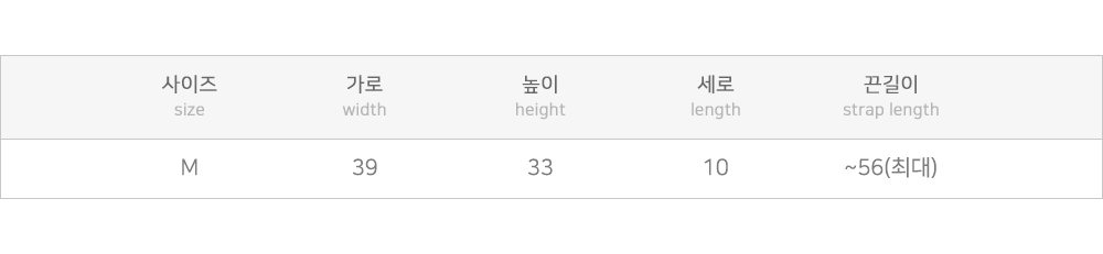| 제품 측정 방법에 따라 1~3cm 오차가 발생할 수 있으며, 사이즈는 단면으로 측정됩니다 | |||