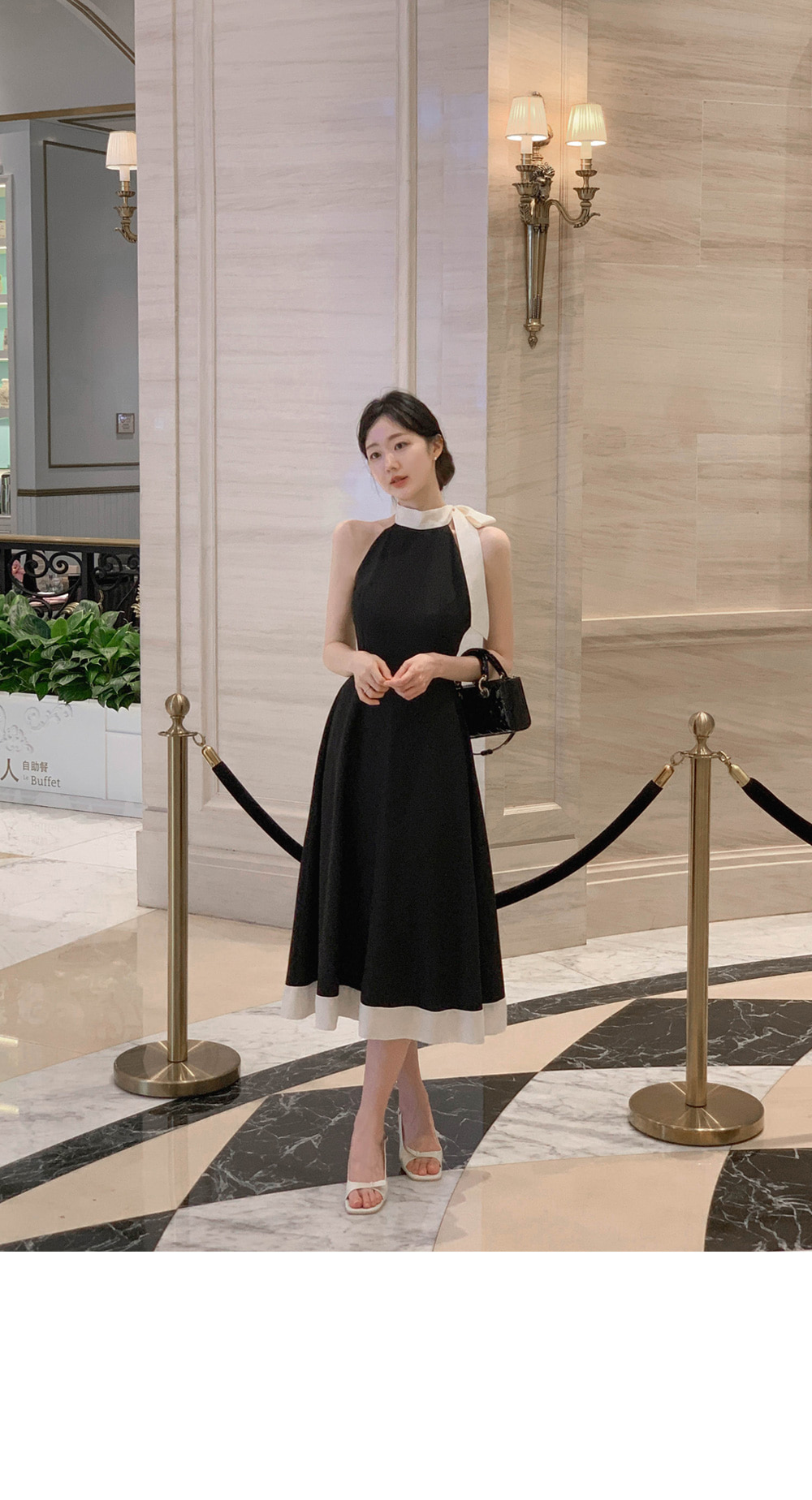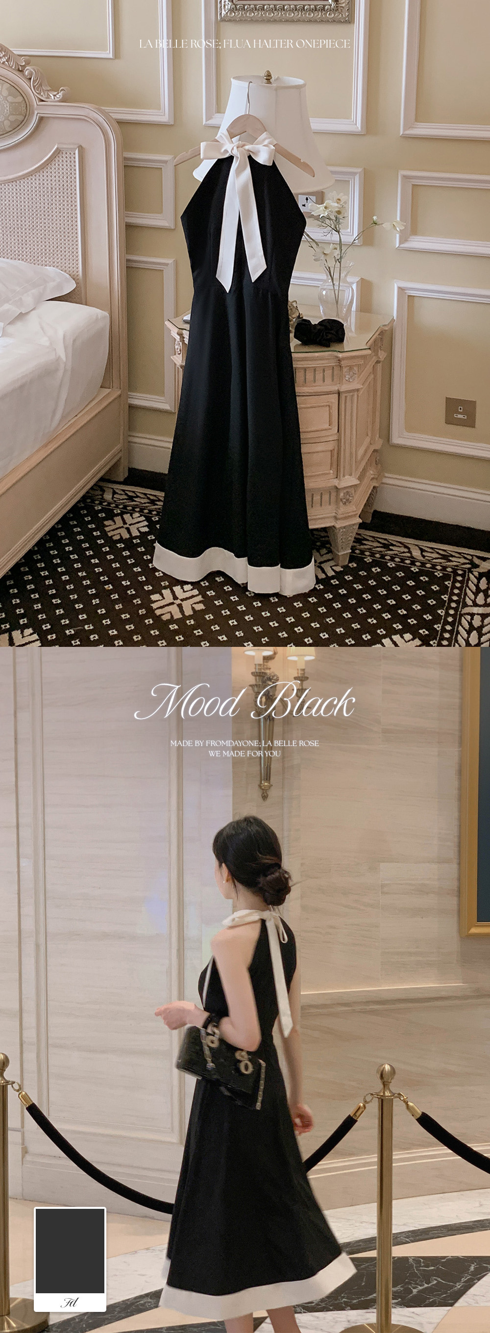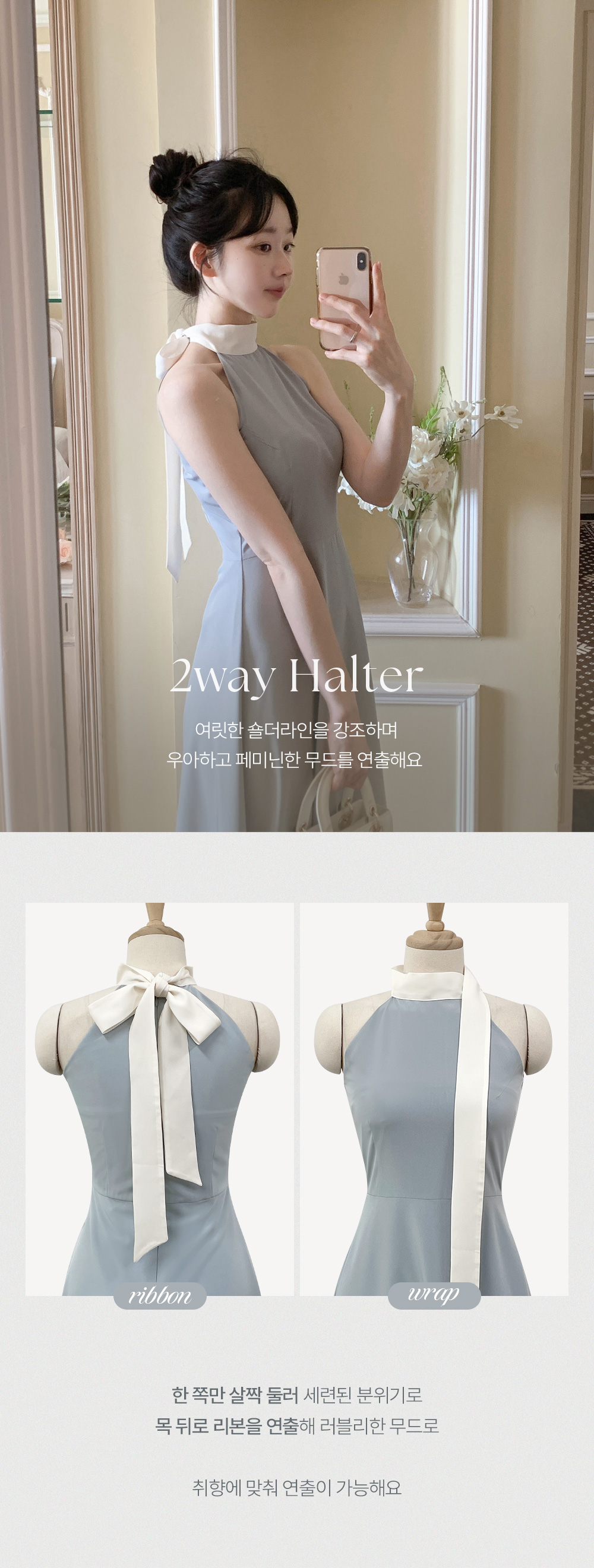 베이직한 홀터넥 디자인에 리본 스트랩을 더한 세련된 디테일로