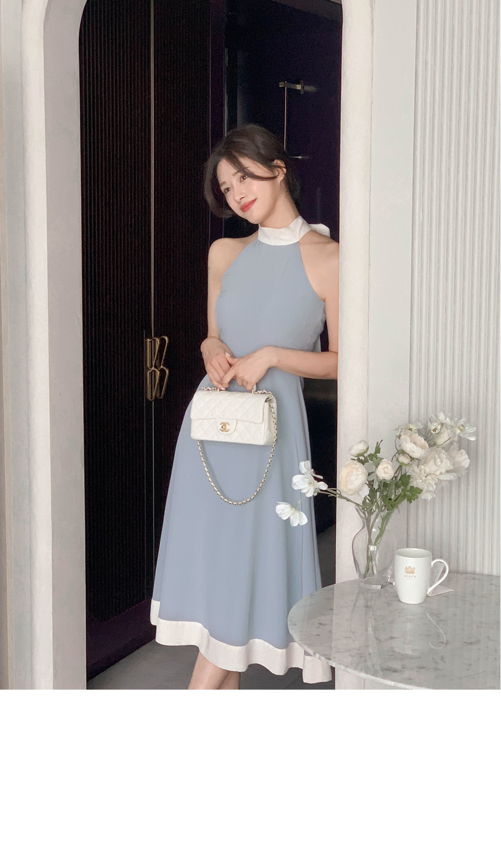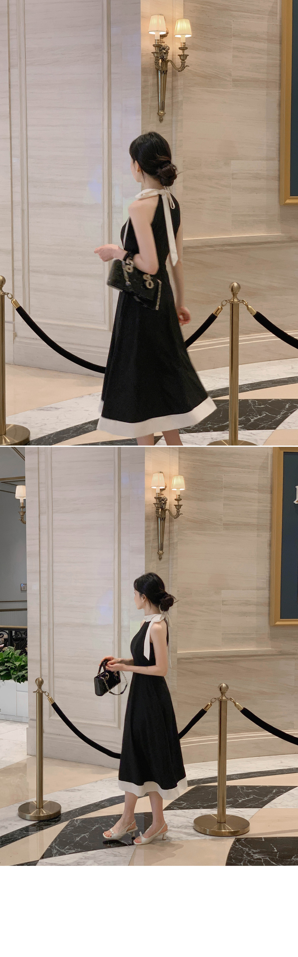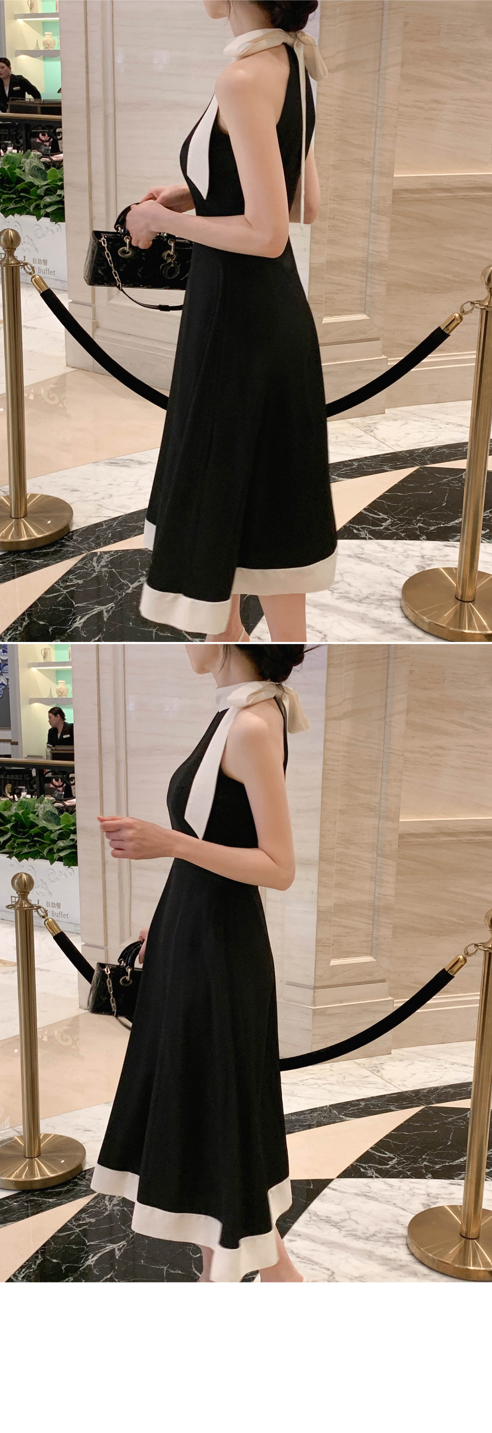 베이직한 홀터넥 디자인에 리본 스트랩을 더한 세련된 디테일로