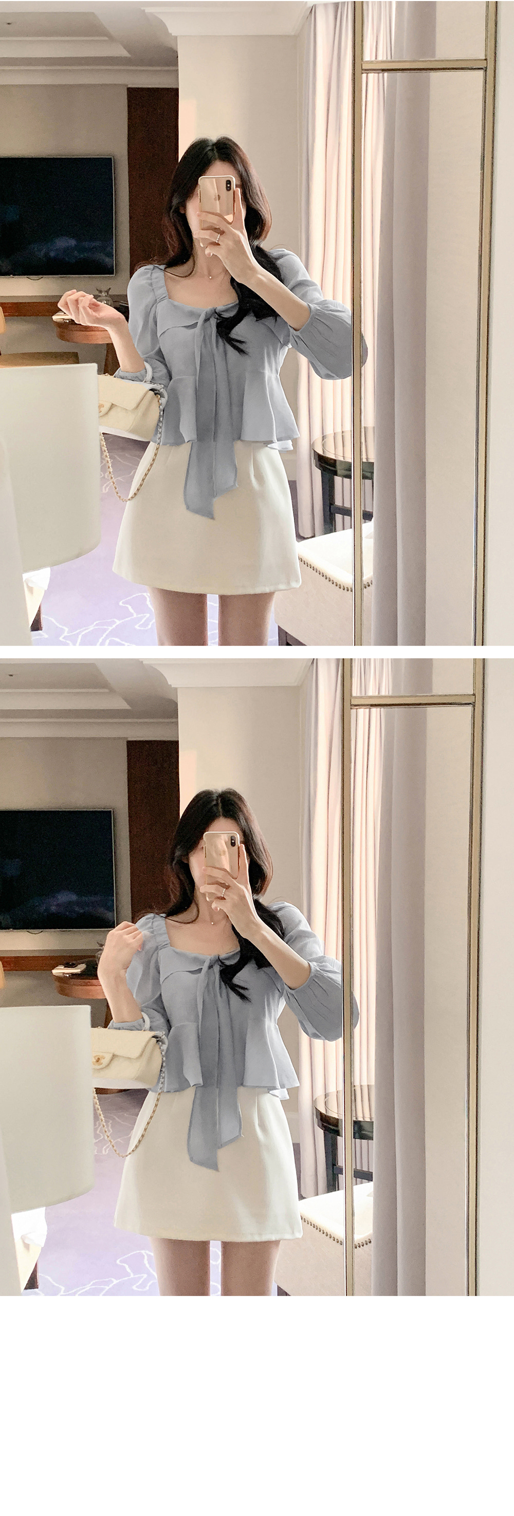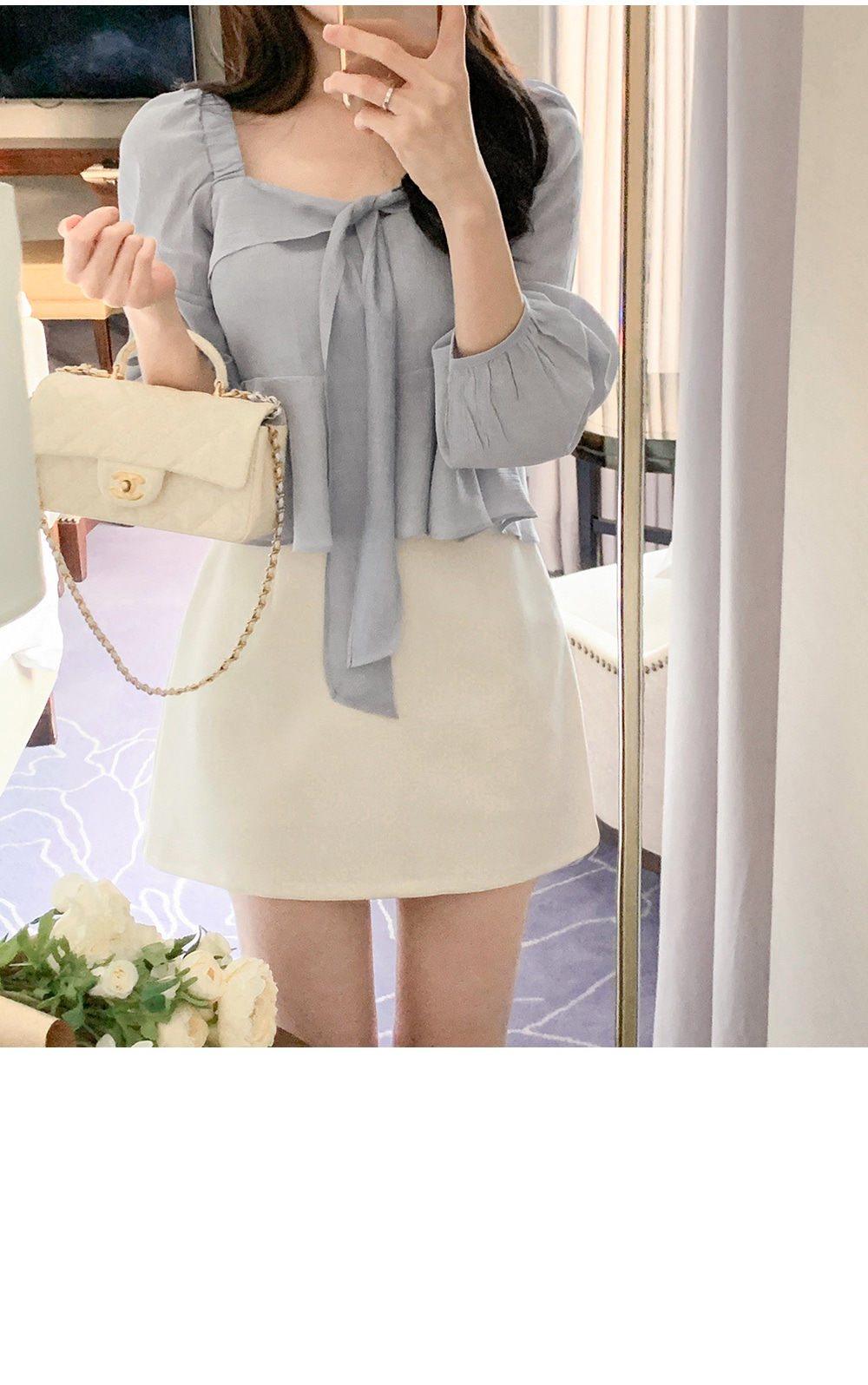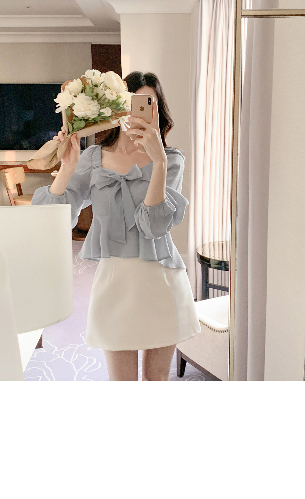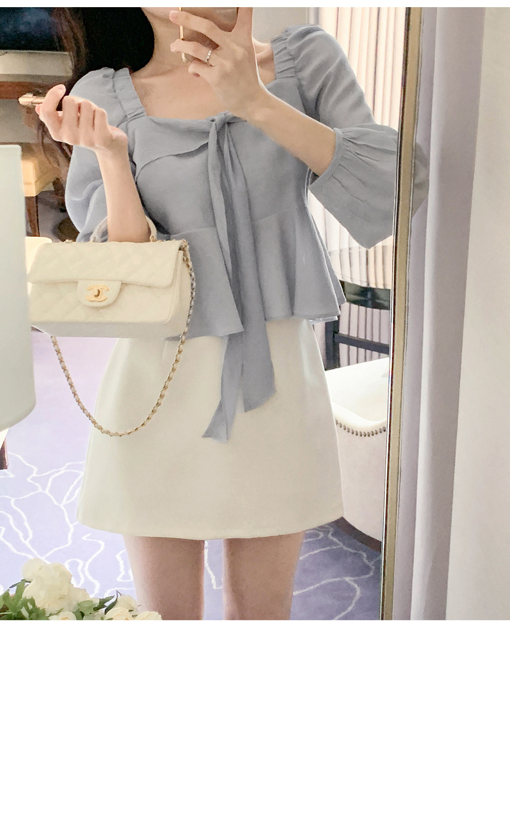 스퀘어넥 디자인으로 목선과 쇄골이 돋보여