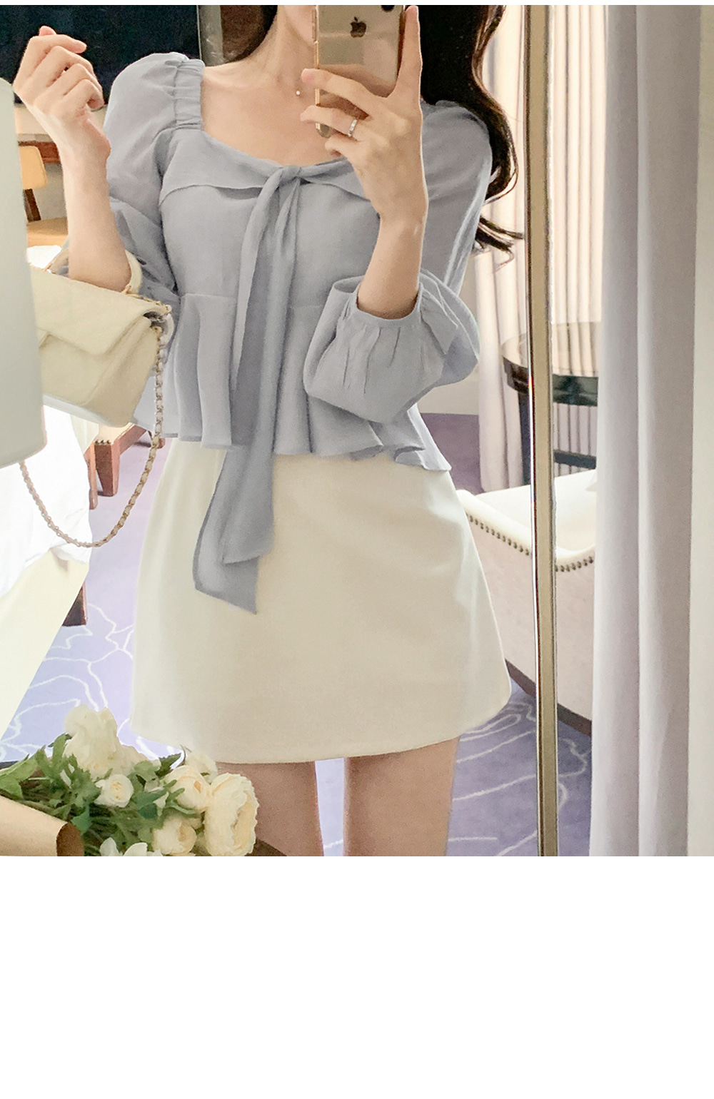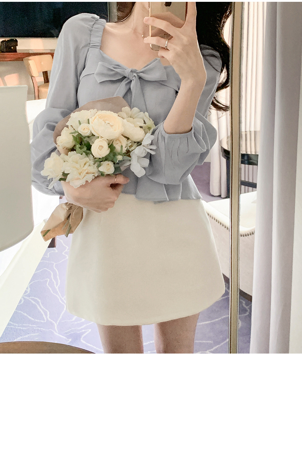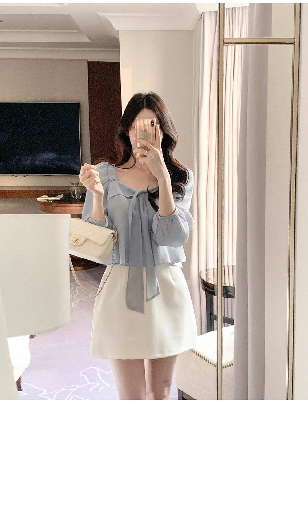 스퀘어넥 디자인으로 목선과 쇄골이 돋보여