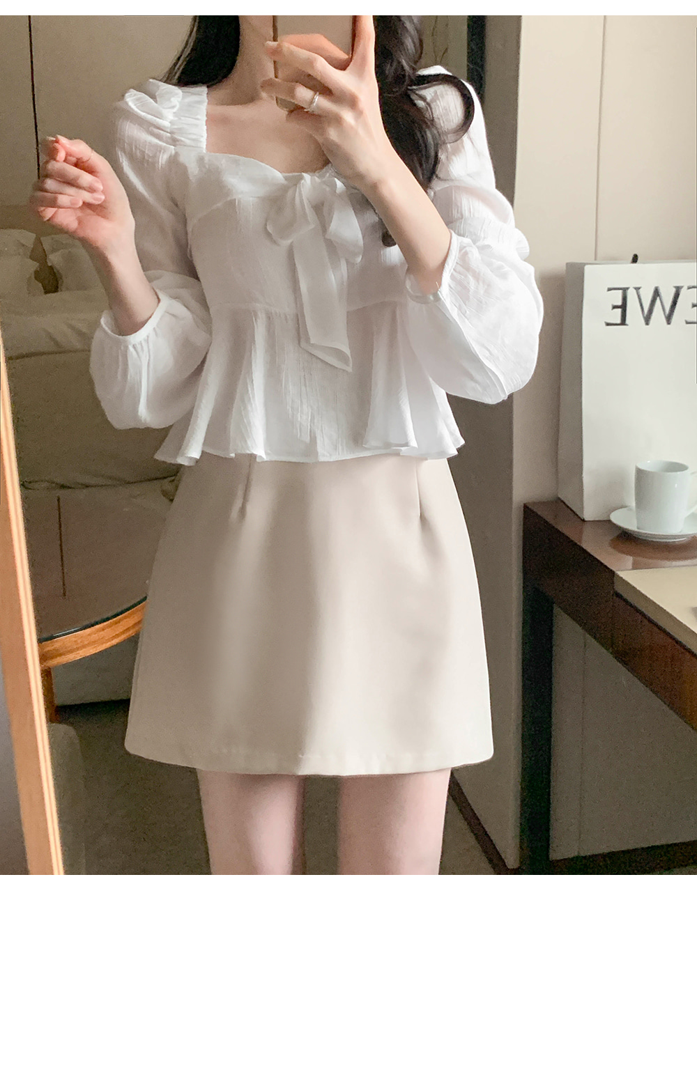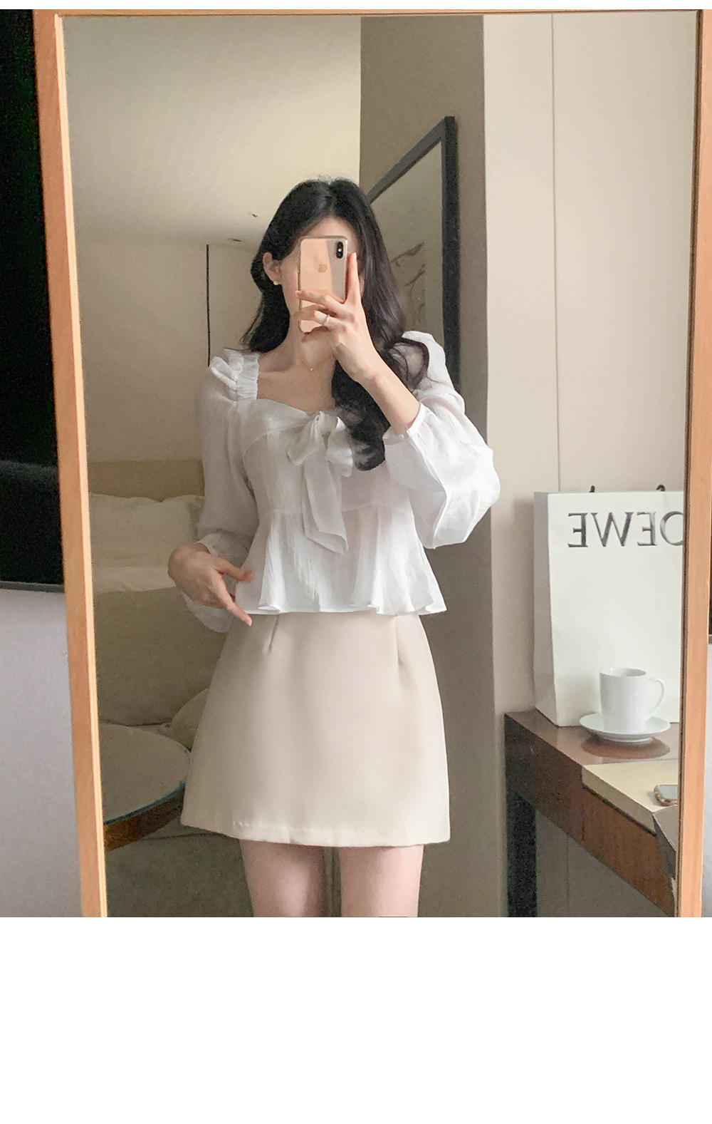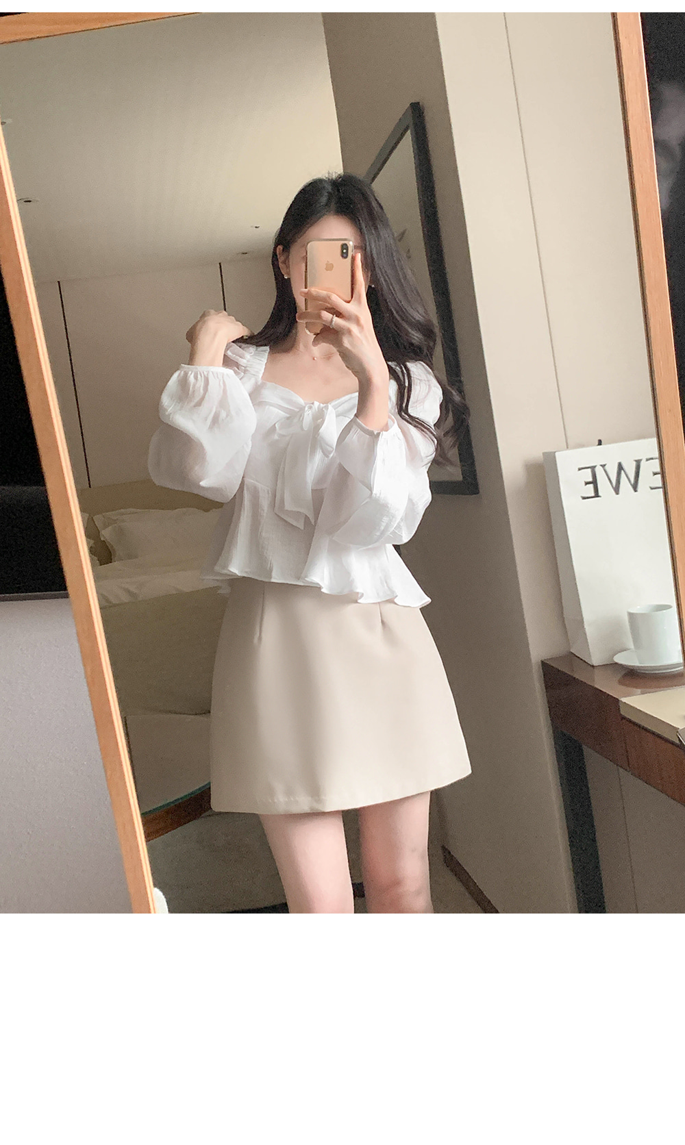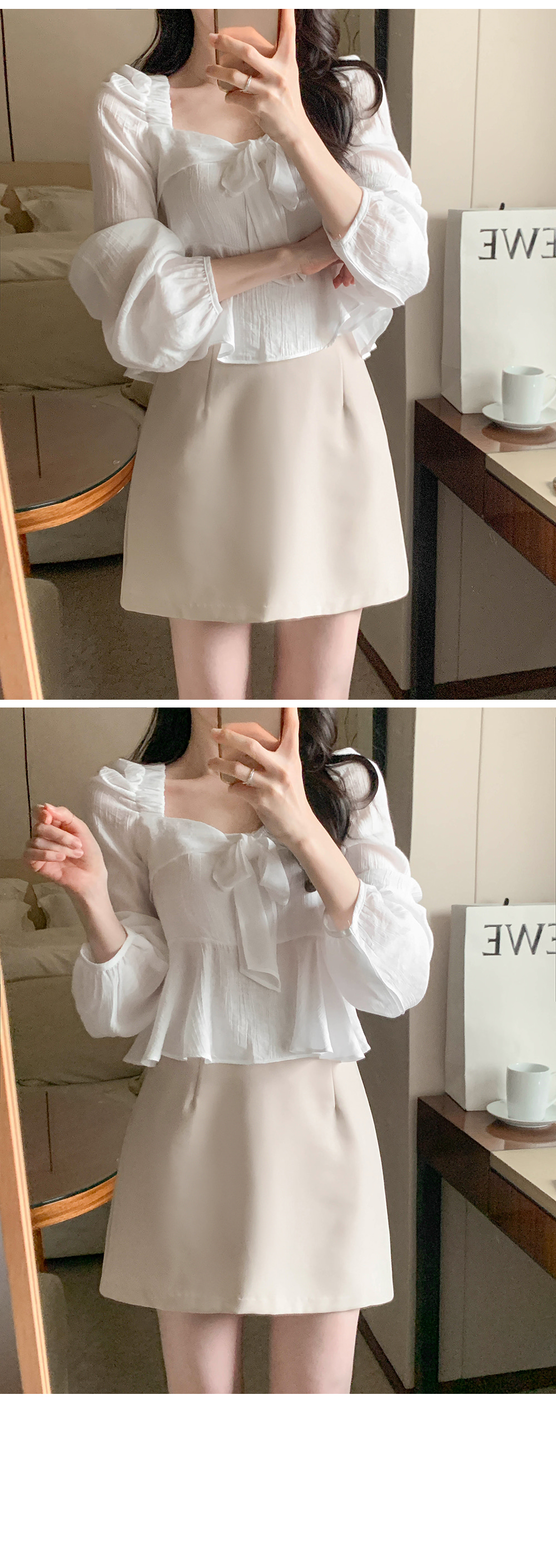 스퀘어넥 디자인으로 목선과 쇄골이 돋보여